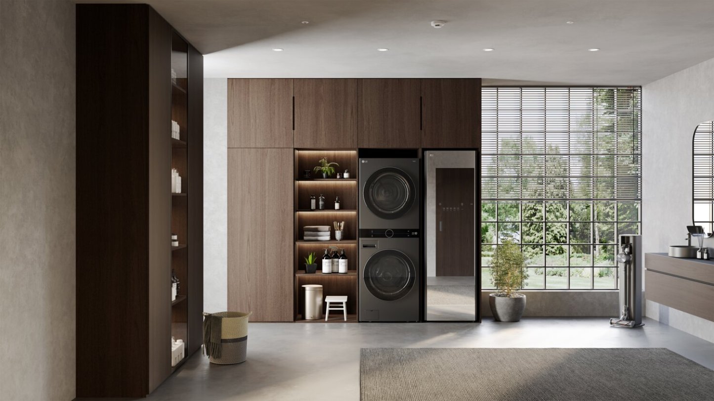 Laveuse LG 5,8/Sécheuse 7,8 Cu. Fort. Tour de lavage haute efficacité à chargement frontal™ - Acier noir - WKHC252HBA | Tour de lavage WashTowerMC haute efficacité LG à chargement frontal avec laveuse de 5,8 pi³ et séche…