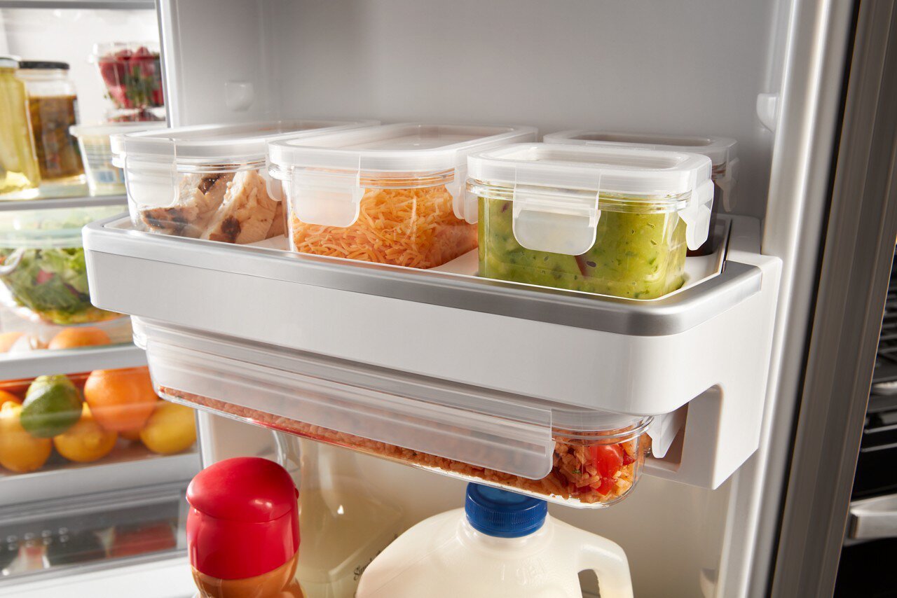 Découvrez les espaces fonctionnels qui offrent à ranger les favoris de votre famille avec ce réfrigérateur Whirlpool. Les nouveaux bacs Prep & Store permettent d'organiser votre réfrigérateur et de garder les aliments visibles, tandis que l'étagère Prep & Store facilite l'accès aux restes, aux repas préparés et plus encore. De plus, le tiroir extérieur réfrigéré vous permet d'ajuster les commandes de température en fonction de ce que vous stockez et disposez de séparateurs pour une organisation facile. Un triple bac à légumes avec auto-humidité vous offre plus de flexibilité, tandis que le stockage In-Door-Ice® libère de l'espace en déplaçant le bac à glace à l'intérieur de la porte du réfrigérateur.