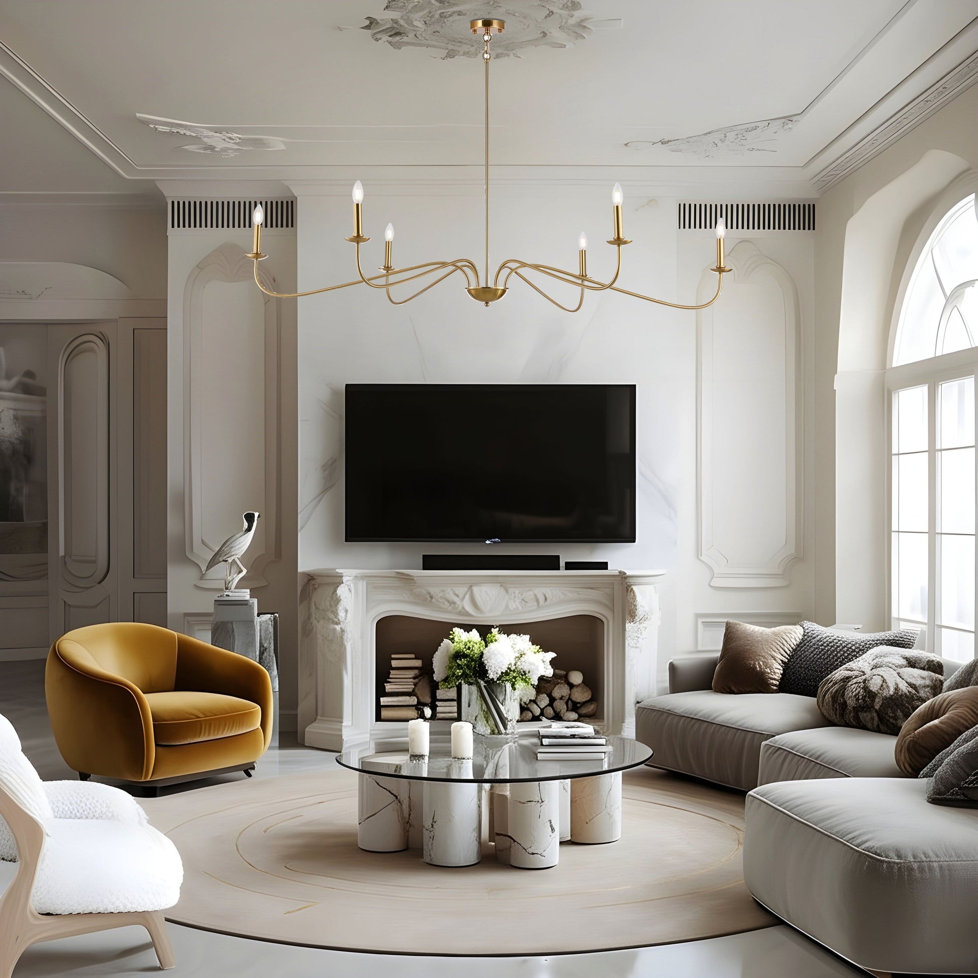 D'une conception simple, le lustre Candler traditionnel à 6 lumières confère une ambiance élégante à votre îlot de cuisine, votre salle à manger ou votre entrée. Son design sobre met en valeur des bras métalliques supportant des ampoules candélabres apparentes, pour un charme d'antan. De plus, sa configuration polyvalente permet une installation sur des surfaces inclinées, ce qui en fait un excellent choix pour les plafonds en pente. Le matériel de fixation est inclus.