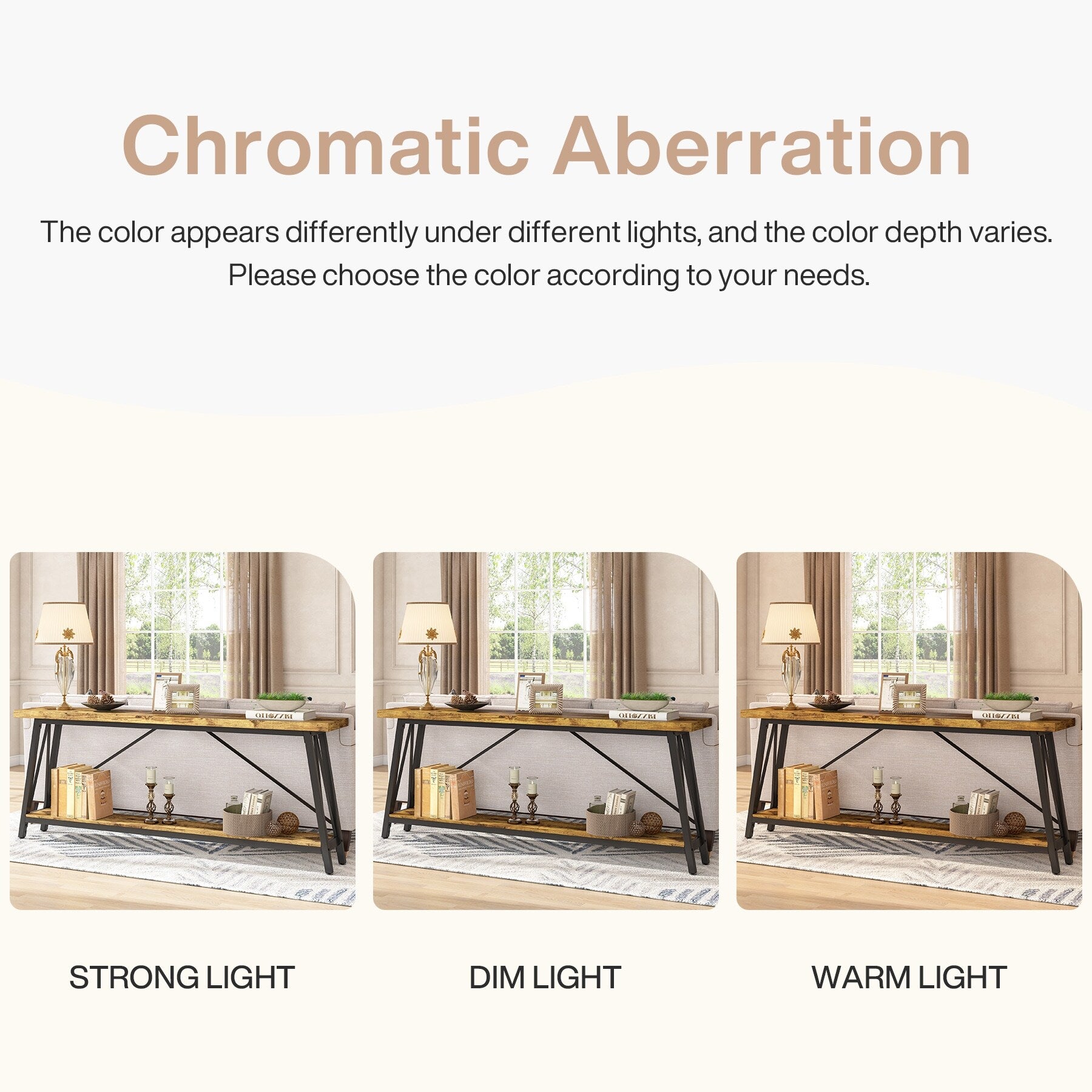 Apportez une touche de style industriel rustique à votre salon ou votre entrée avec cette console classique extra longue de 180 cm. Ses deux étagères offrent un espace de rangement généreux pour exposer vos livres préférés, vos photos encadrées ou vos œuvres d'art. Sa structure triangulaire robuste et ses pieds en métal épais lui confèrent une grande capacité de charge jusqu'à 104 kg, tandis que ses patins réglables assurent sa stabilité même sur un sol irrégulier. Le montage est facile grâce aux pièces identifiées et à la notice fournie.