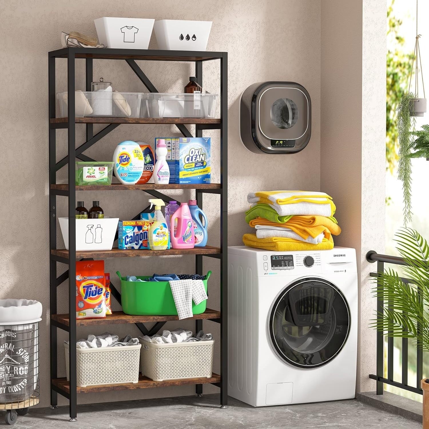 Vous cherchez une étagère haute et pratique pour optimiser le rangement de votre maison et de votre chambre ? Cette étagère multifonctionnelle, qui fait également office de meuble de rangement, est la solution idéale pour organiser et ranger vos appareils électroménagers (mixeur, four, grille-pain), vos ustensiles de cuisine et votre vaisselle. Outre son utilisation comme meuble de rangement, elle est aussi parfaite comme organiseur de coin café pour y placer fruits, pain, conserves, boissons, machine à café, etc. Son design unique apporte une touche d'élégance à votre intérieur. Sa grande capacité permet de ranger non seulement des fournitures de bureau volumineuses, mais aussi des livres, des documents, etc. Cette étagère multifonctionnelle vous offrira un espace de travail propre et agréable, aussi bien à la maison qu'au bureau. Dites adieu au désordre, optez pour la simplicité et gagnez en confort et en productivité. Ses pieds en métal lui confèrent un style industriel vintage, tandis que ses étagères ouvertes offrent un espace de rangement supplémentaire pour vos fournitures de bureau comme une imprimante ou un scanner. Ses 6 niveaux de rangement offrent un espace généreux pour exposer vos objets préférés : livres, albums photo, créations artisanales, plantes en pot, etc.