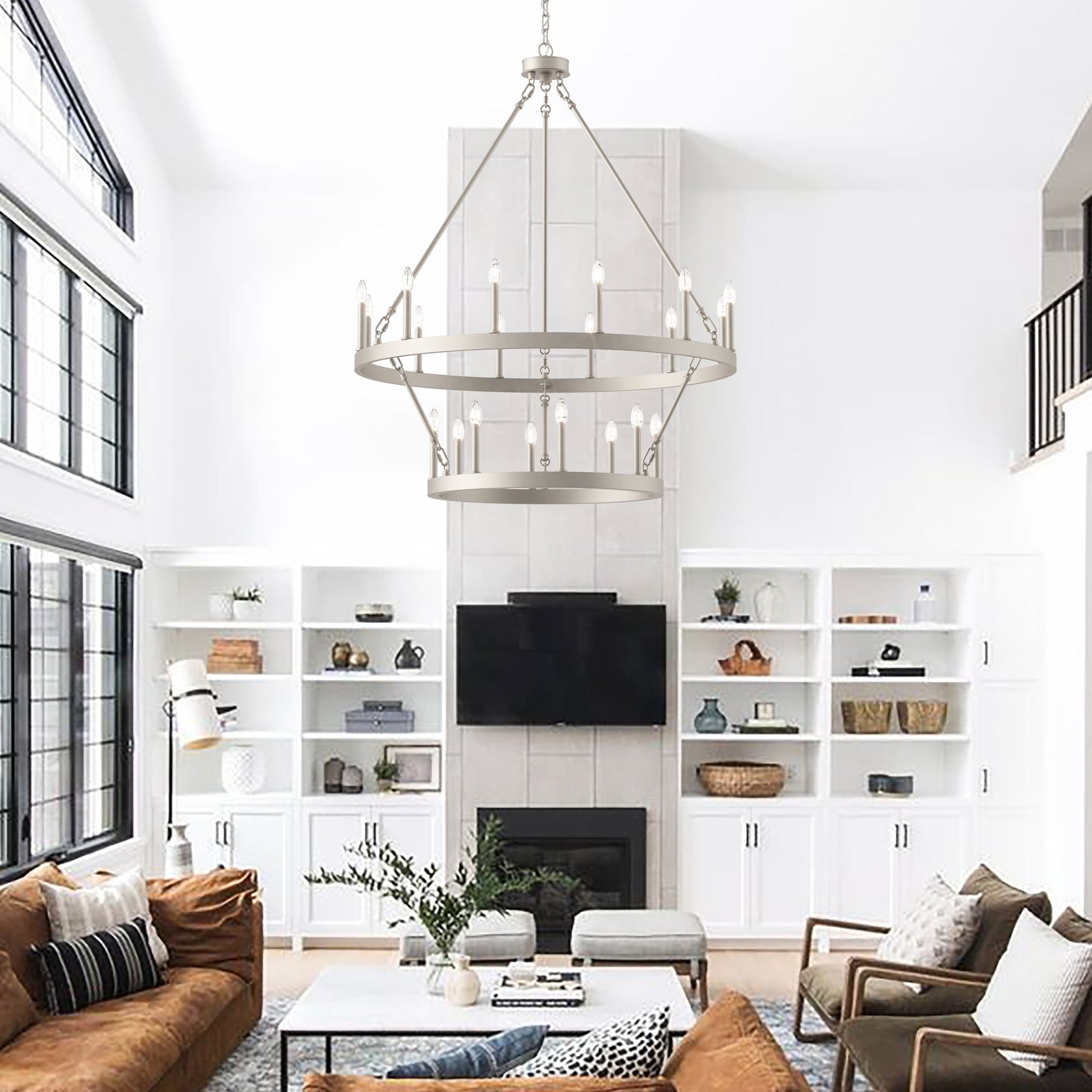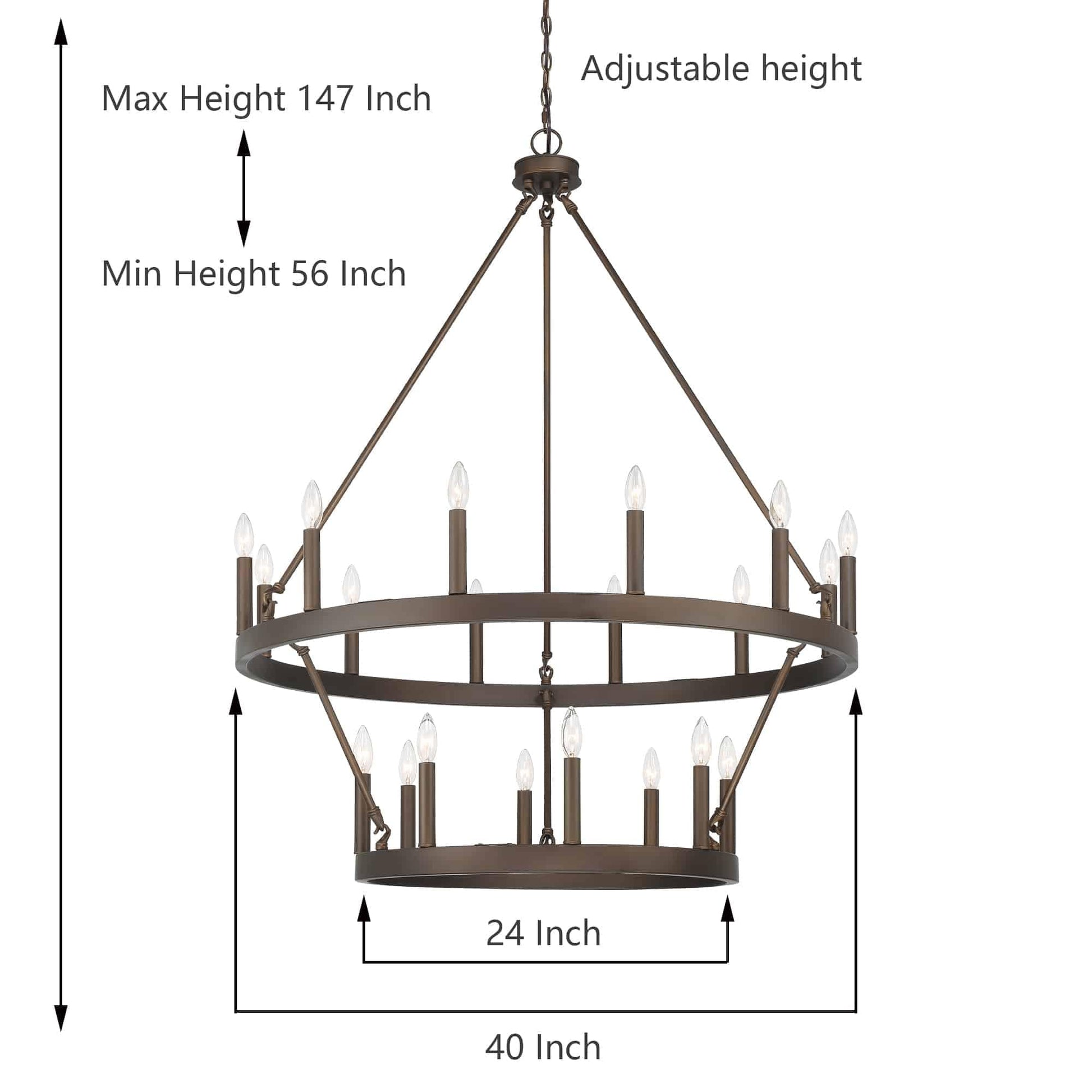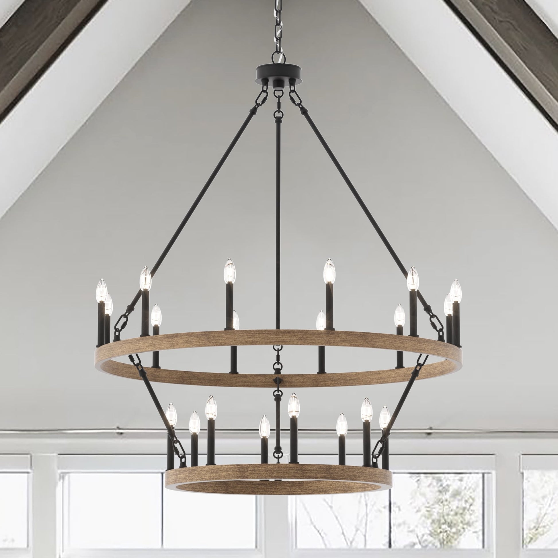 Lustre Acroma moderne à 20 lumières, style ferme, rond, 40 po, en forme de roue de chariot, homologué UL.