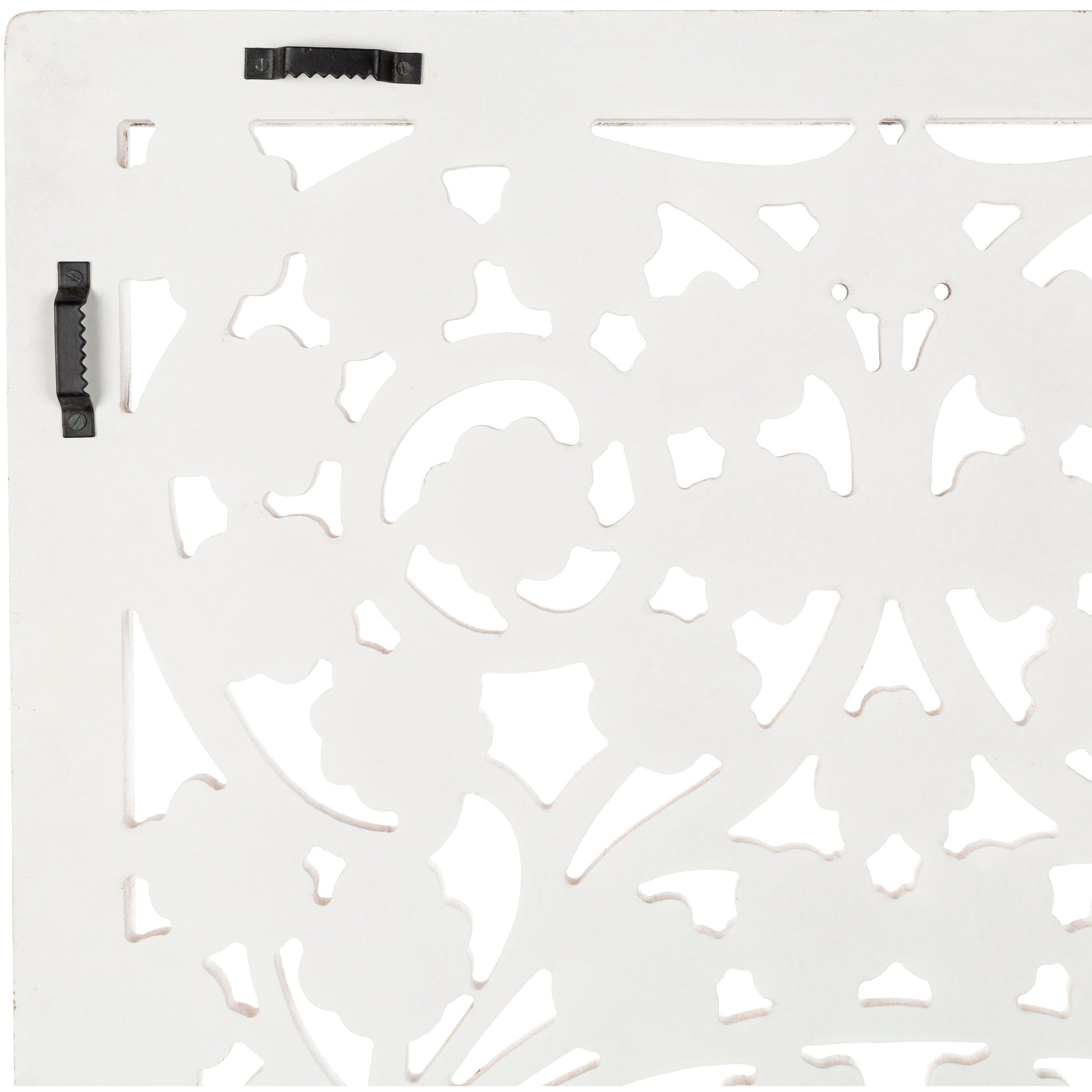 Apportez une touche d'exotisme à votre intérieur avec ce magnifique panneau mural. Chaque panneau est sculpté à la main avec une grande finesse et orné de miroirs selon la technique traditionnelle indienne. Sa finition blanche patinée lui confère une allure contemporaine et une grande polyvalence. Idéal pour mettre en valeur un espace, ce panneau peut être installé verticalement ou horizontalement.
