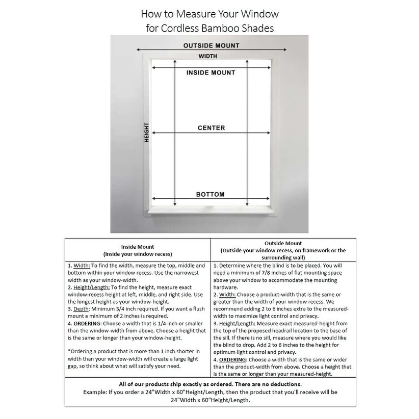 Stores romains en bambou Arlo Blinds Tuscan de 74 pouces de haut, sans cordon, à levage vertical