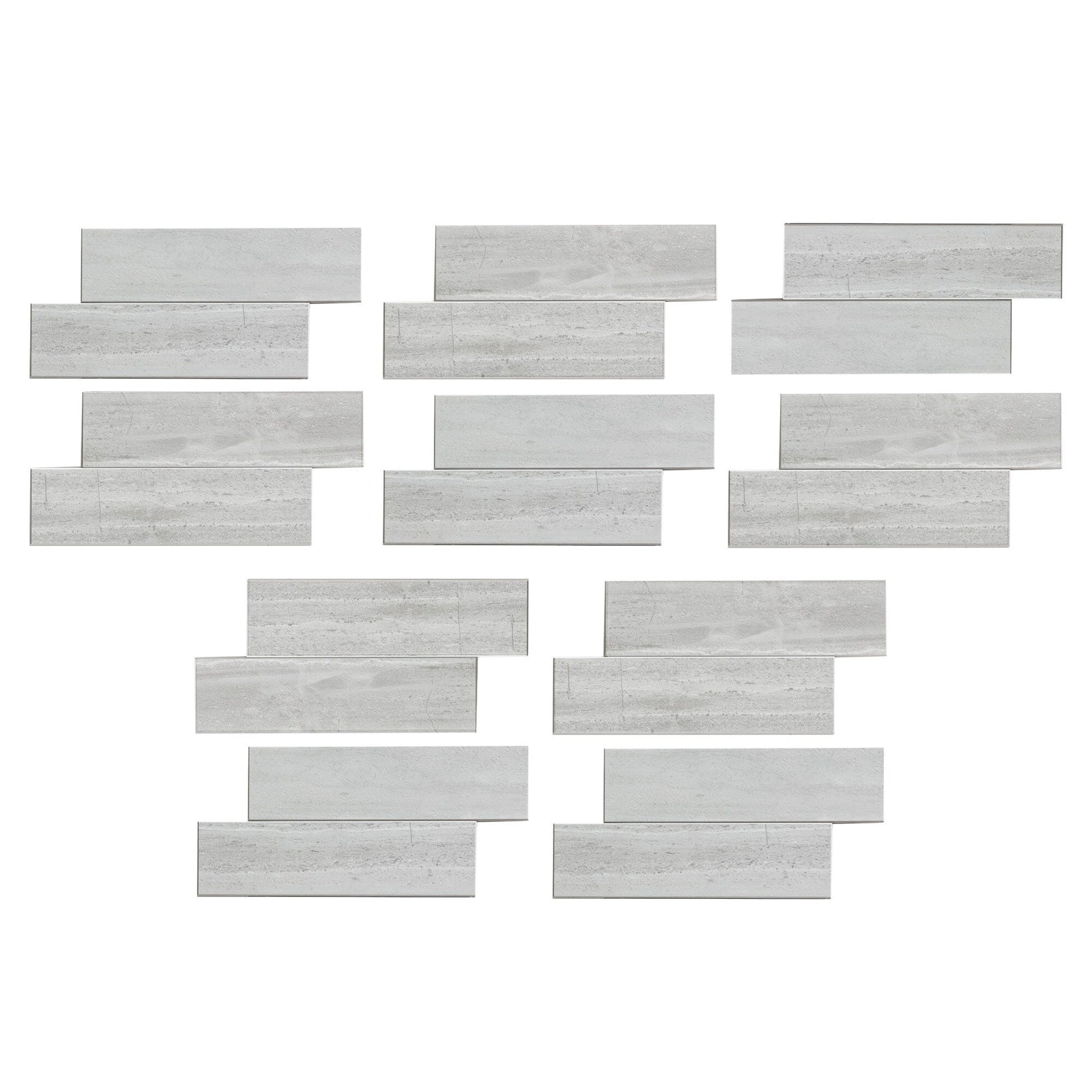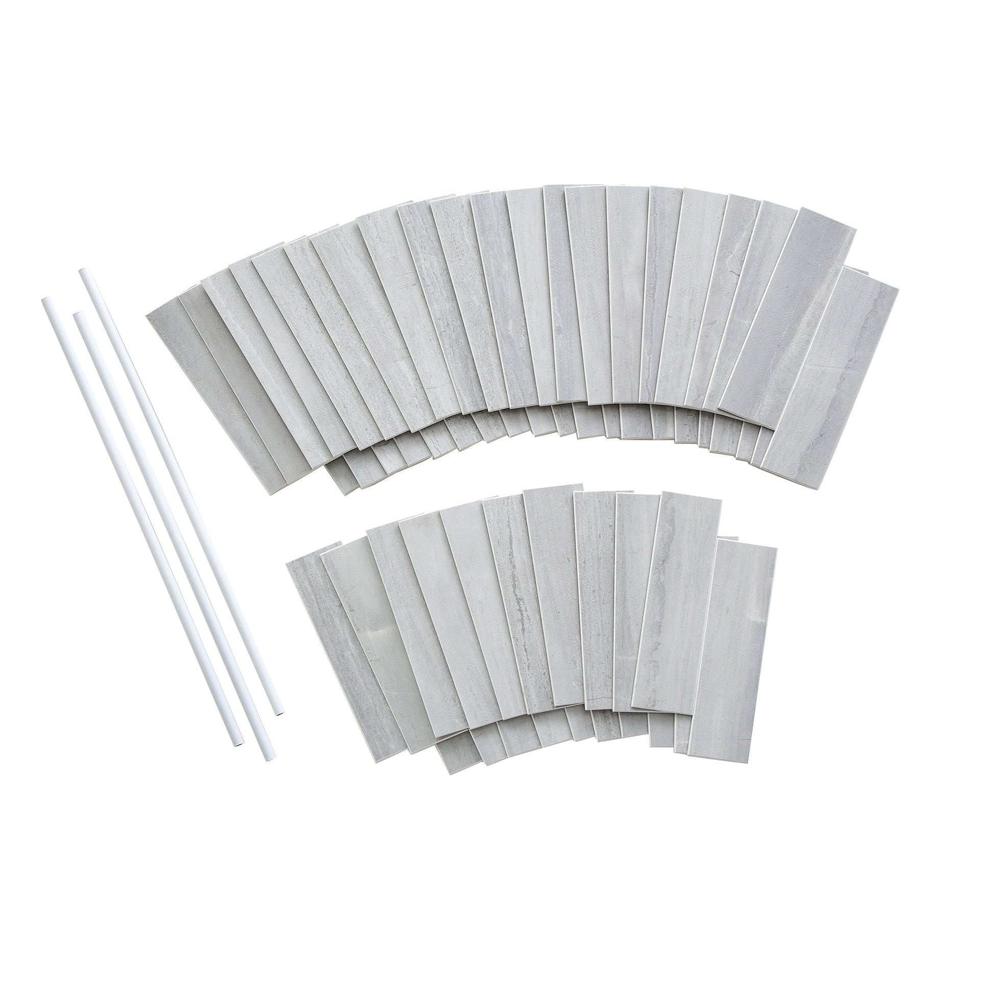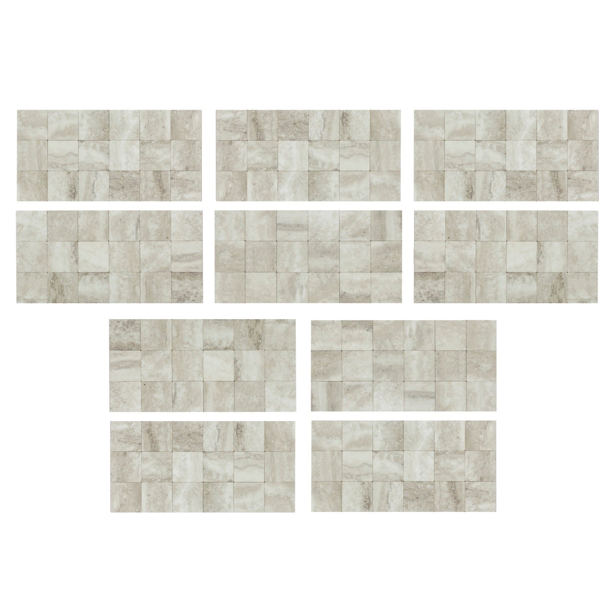 Chaque kit Aspect Collage comprend 16 carreaux et 3 bordures assorties de 61 cm (24 pi), couvrant une surface totale d'environ 1,4 m² (15 pi²).