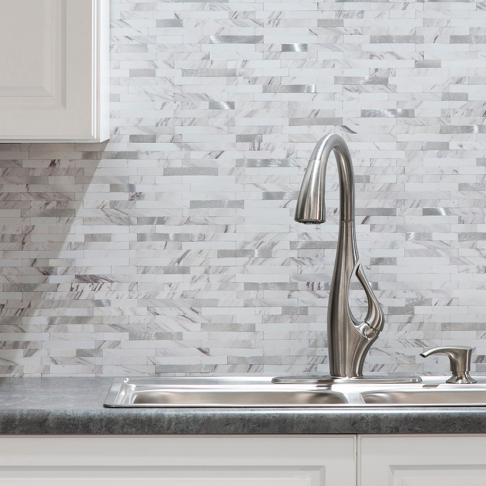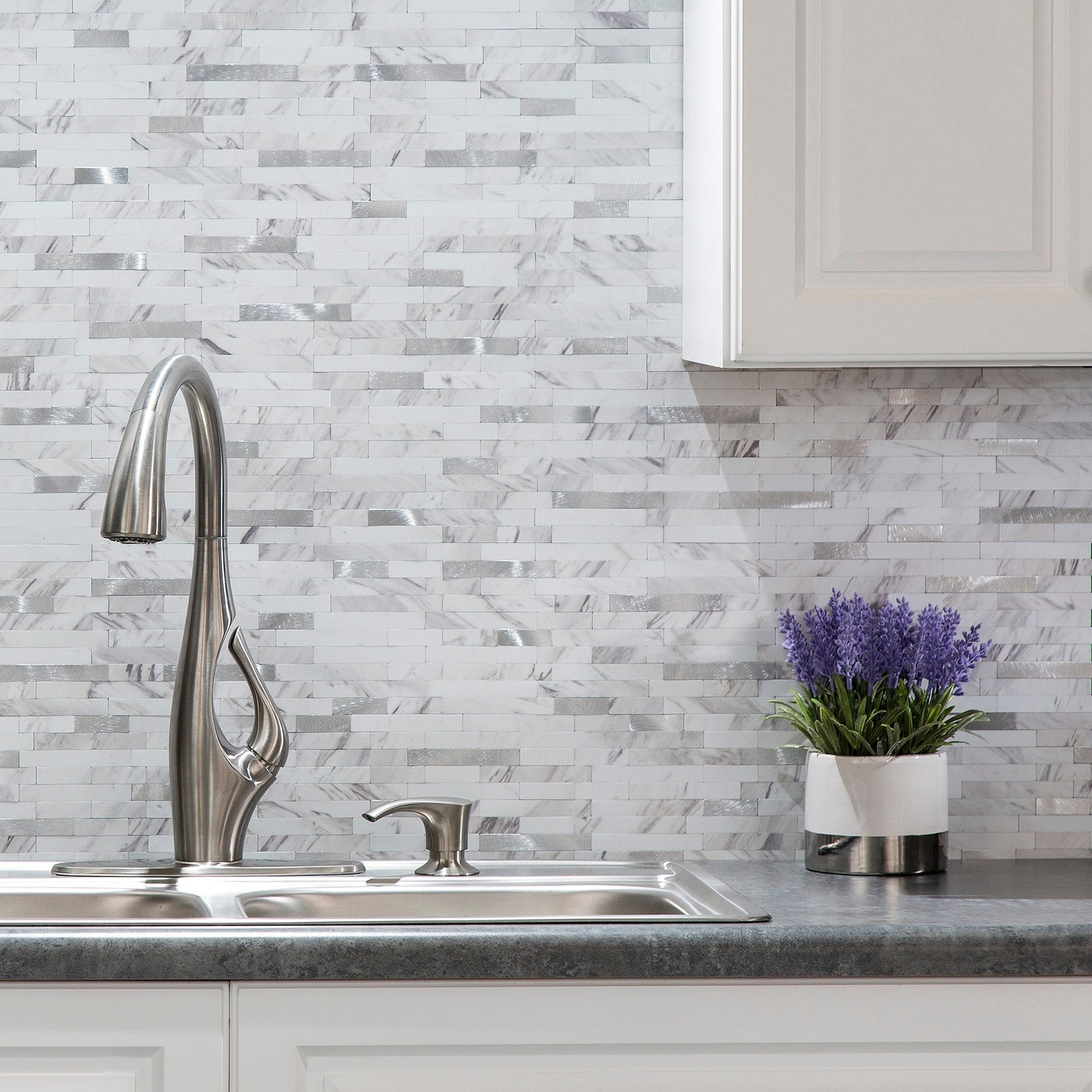 Modernisez votre cuisine ou votre salle de bain rapidement et facilement avec les carreaux adhésifs Aspect Collage. Les carreaux Aspect Collage sont composés d'un mélange unique de finitions composites durables, créant ainsi une crédence élégante qui s'adapte à toutes les pièces de votre maison. Grâce à la technologie adhésive d'Aspect, ces carreaux attrayants s'installent en un clin d'œil : il suffit de retirer le film protecteur et de les coller ! Sans mortier ni joint, c'est le produit idéal pour les bricoleurs souhaitant transformer votre pièce en quelques heures seulement !