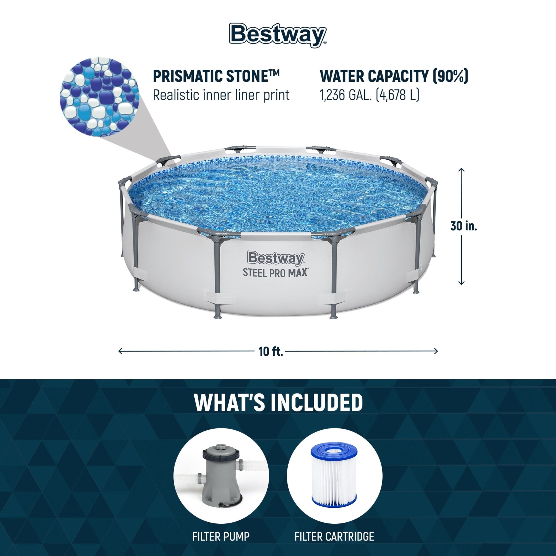 Piscine extérieure ronde hors sol Bestway Steel Pro MAX 10'x30 avec pompe - 10 pi x 30 po.