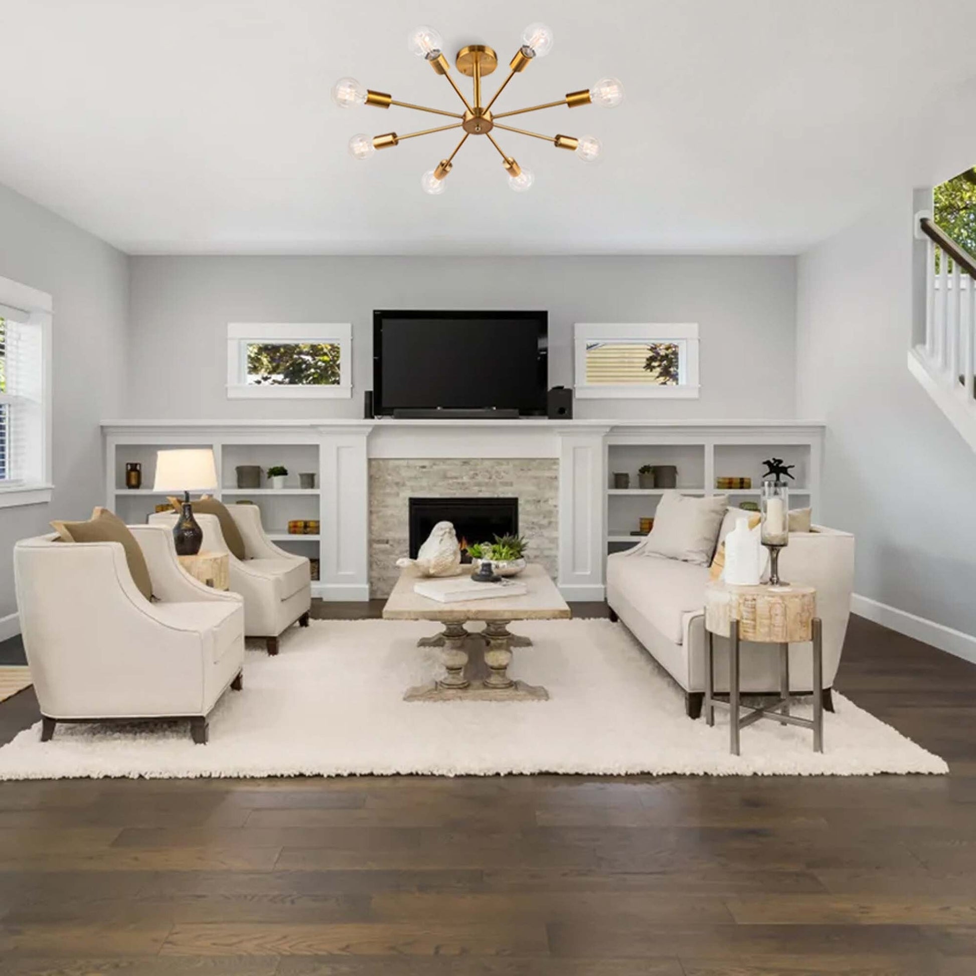 Apportez une touche de nostalgie et de style rétro à votre intérieur avec ce plafonnier semi-encastré Sputnik en métal de style vintage moderne signé RRTYO. Son design Sputnik, avec ses bras équidistants et ses ampoules apparentes, allie à la perfection le charme d'antan et l'esthétique contemporaine, ce qui en fait un luminaire idéal pour tous les styles de décoration. Choisissez parmi les finitions or, noir, nickel ou noir et laiton pour l'harmoniser à votre intérieur. Profitez d'une installation facile grâce aux pièces de montage incluses, et personnalisez la luminosité et l'intensité lumineuse avec un variateur compatible ou des ampoules à intensité variable (non incluses).
