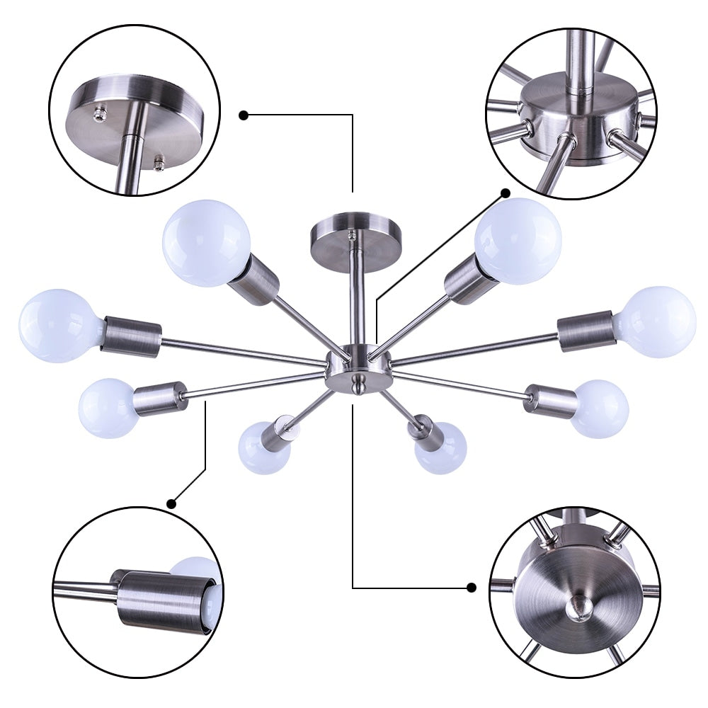 - Conception de type Spoutnik avec des bras équidistants et des ampoules apparentes
