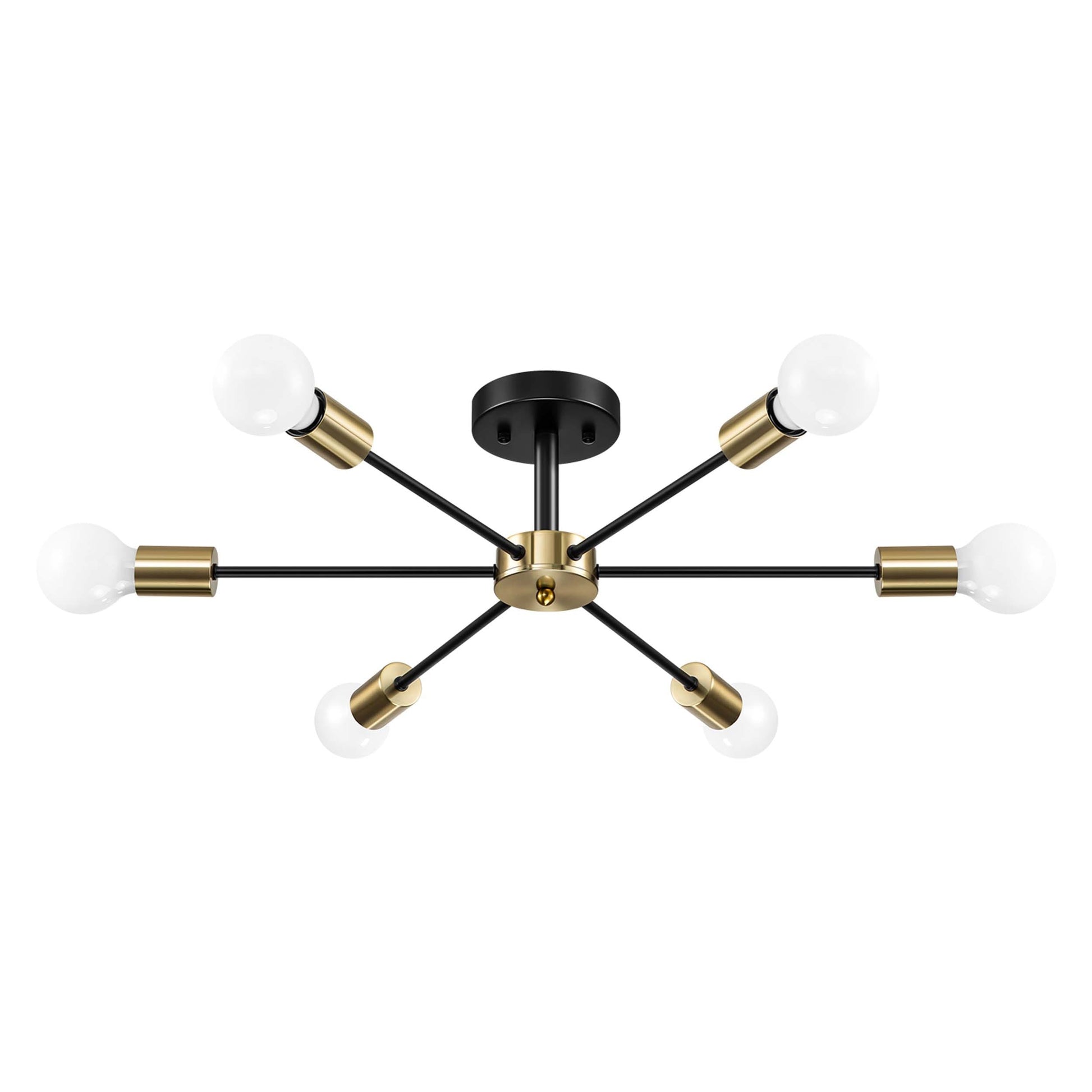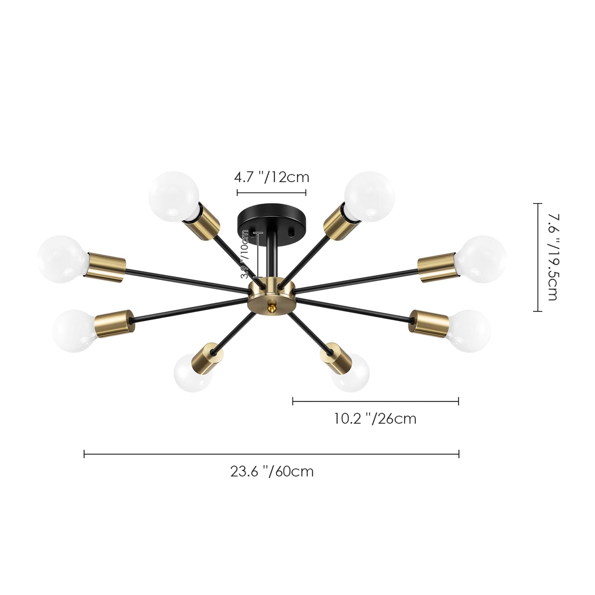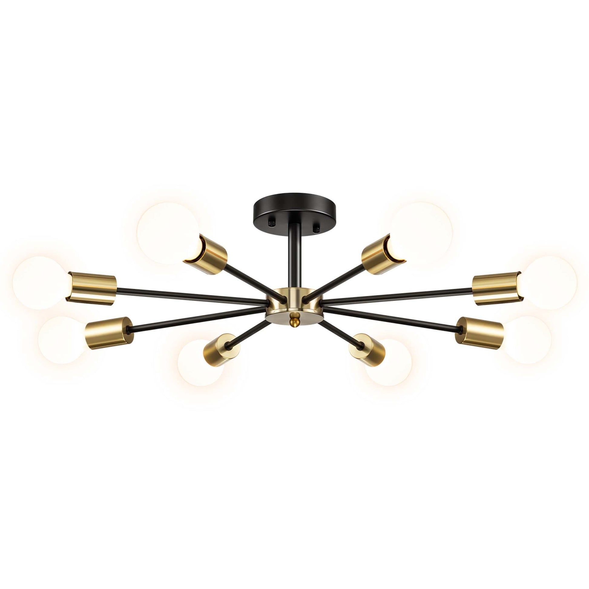 Plafonnier semi-encastré Sputnik noir/doré, idéal pour salon, cuisine, bureau, chambre ou hall d'entrée.