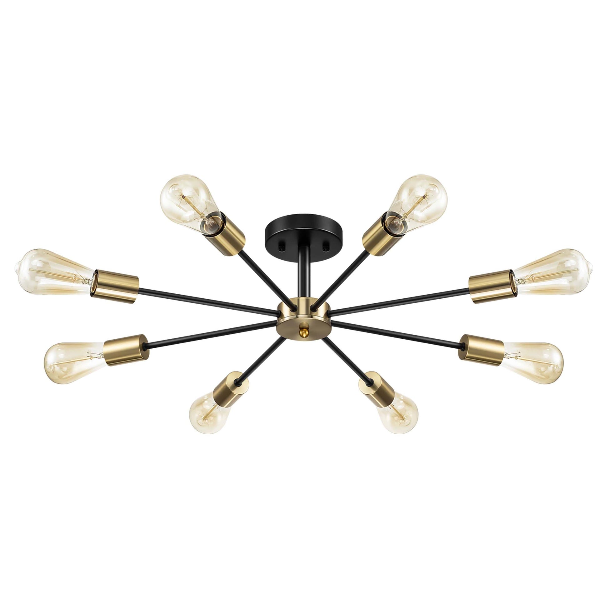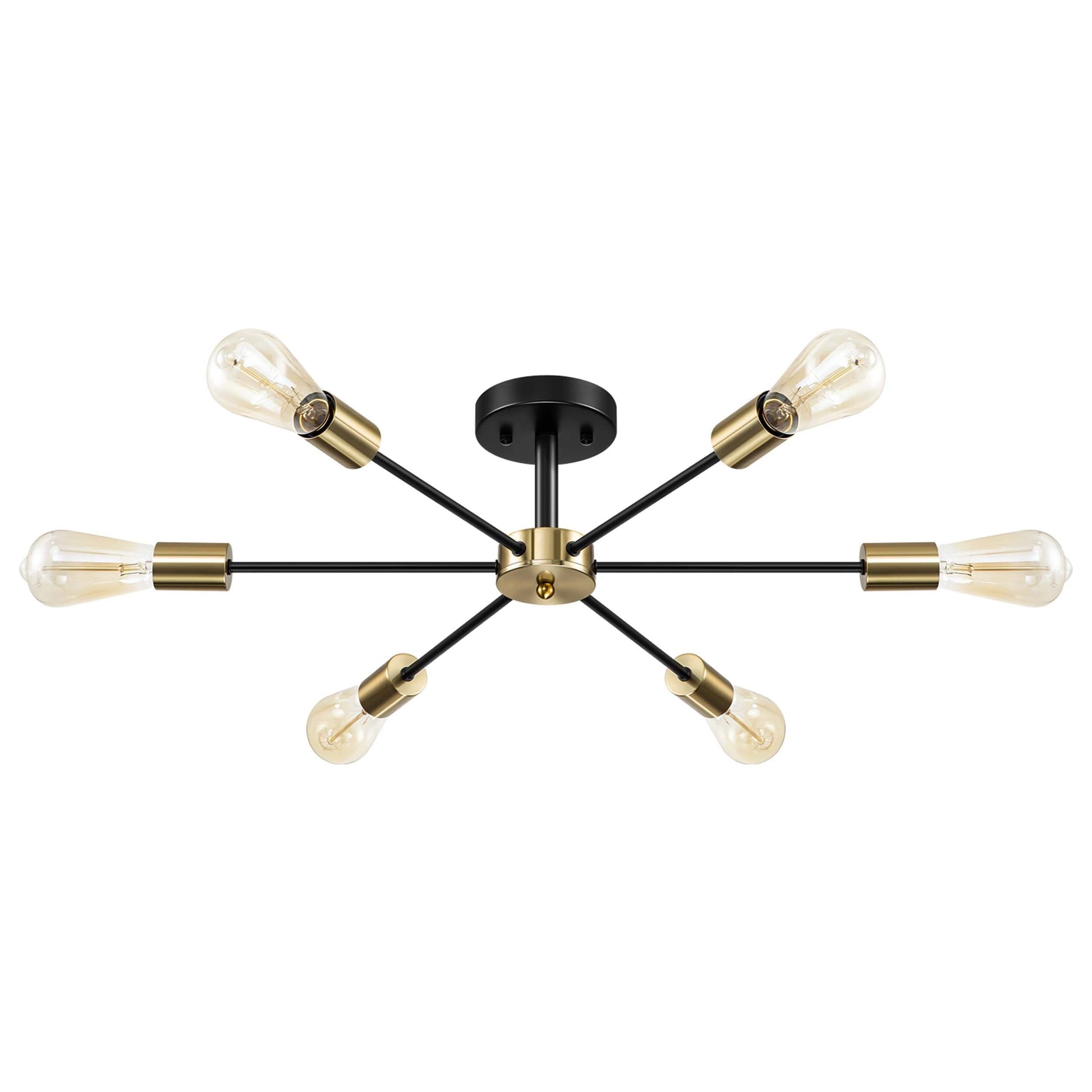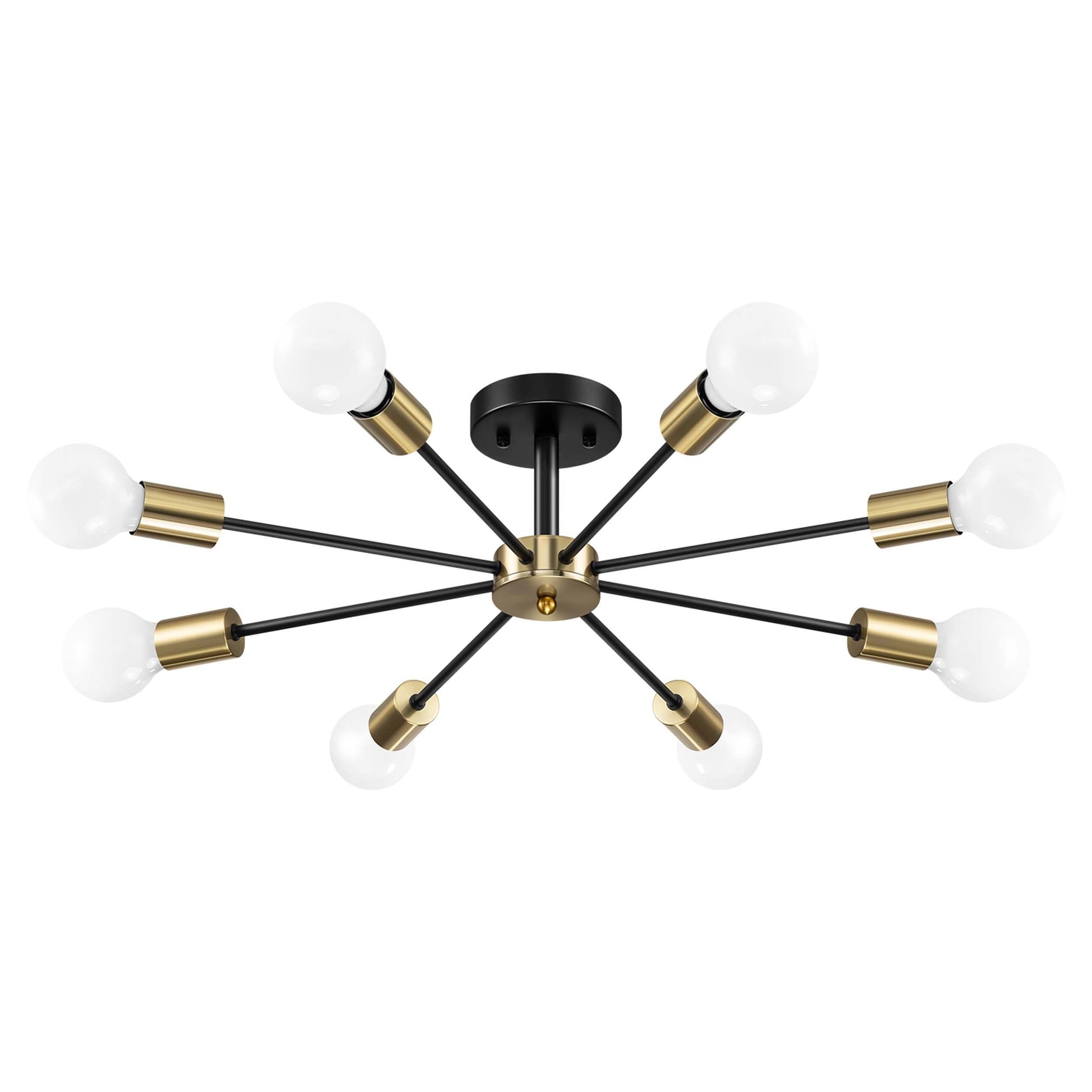 Plafonnier semi-encastré Sputnik noir/doré, idéal pour salon, cuisine, bureau, chambre ou hall d'entrée.