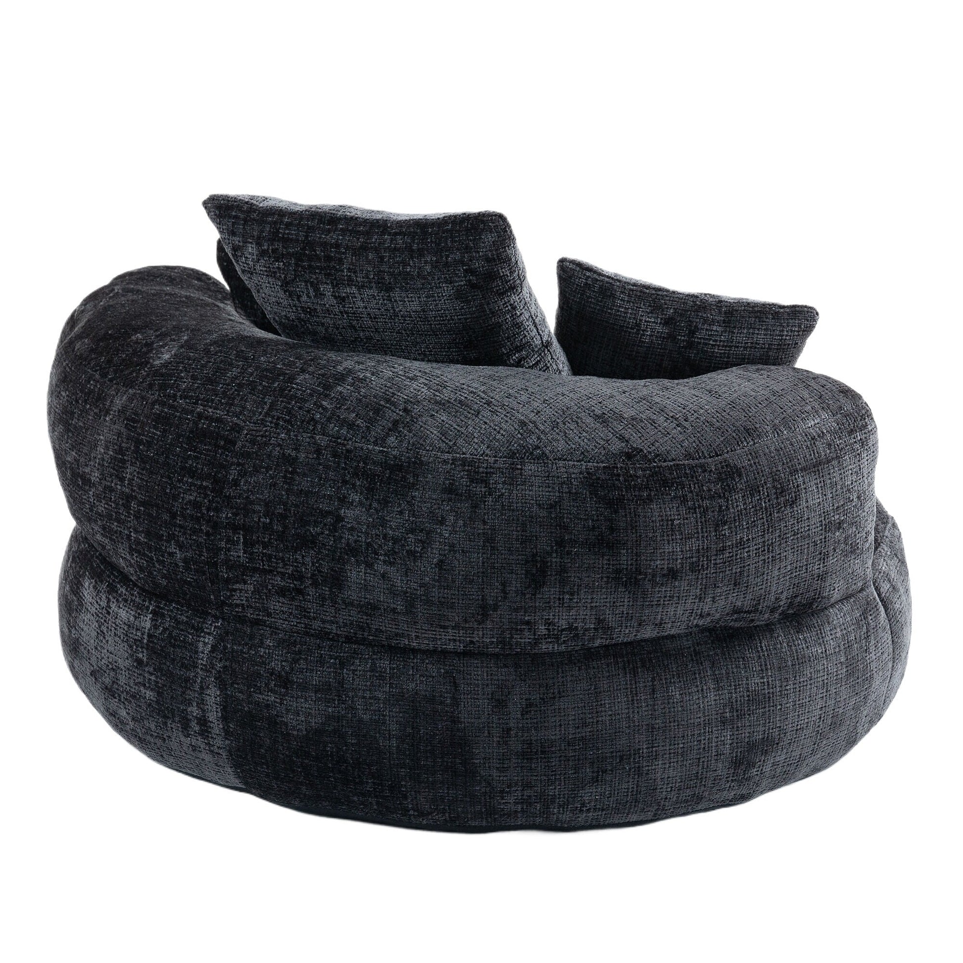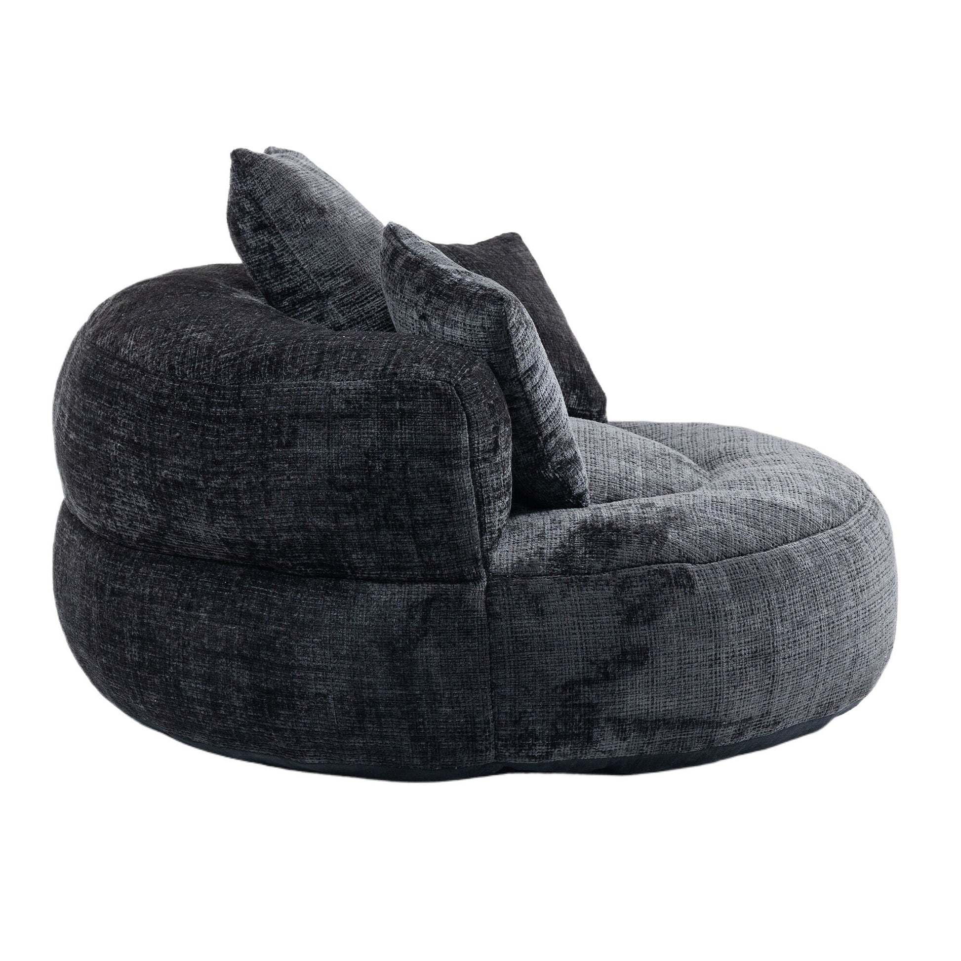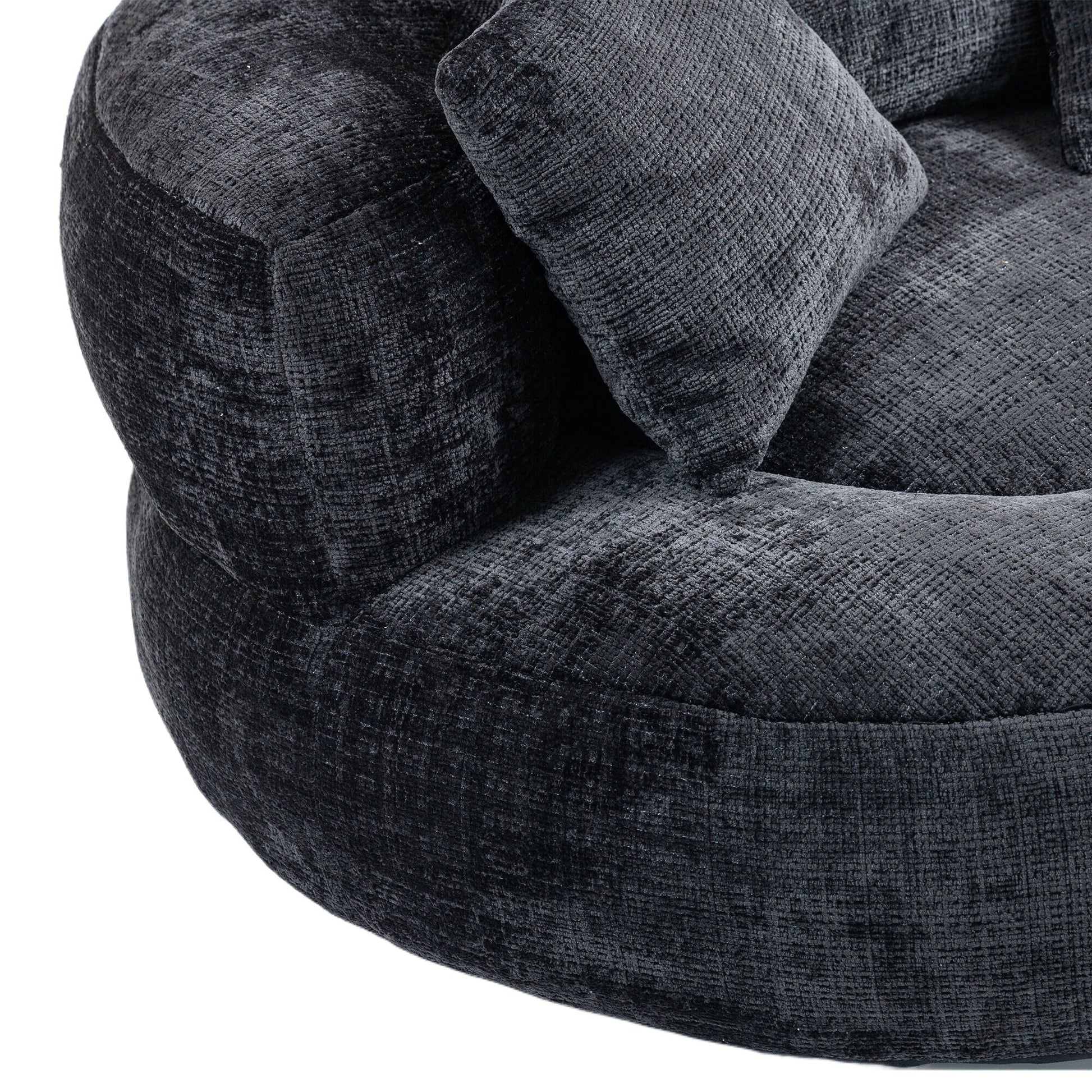 Canapé poire simple surdimensionné en chenille noir de 42,52 pouces avec trois oreillers pour chambre à coucher