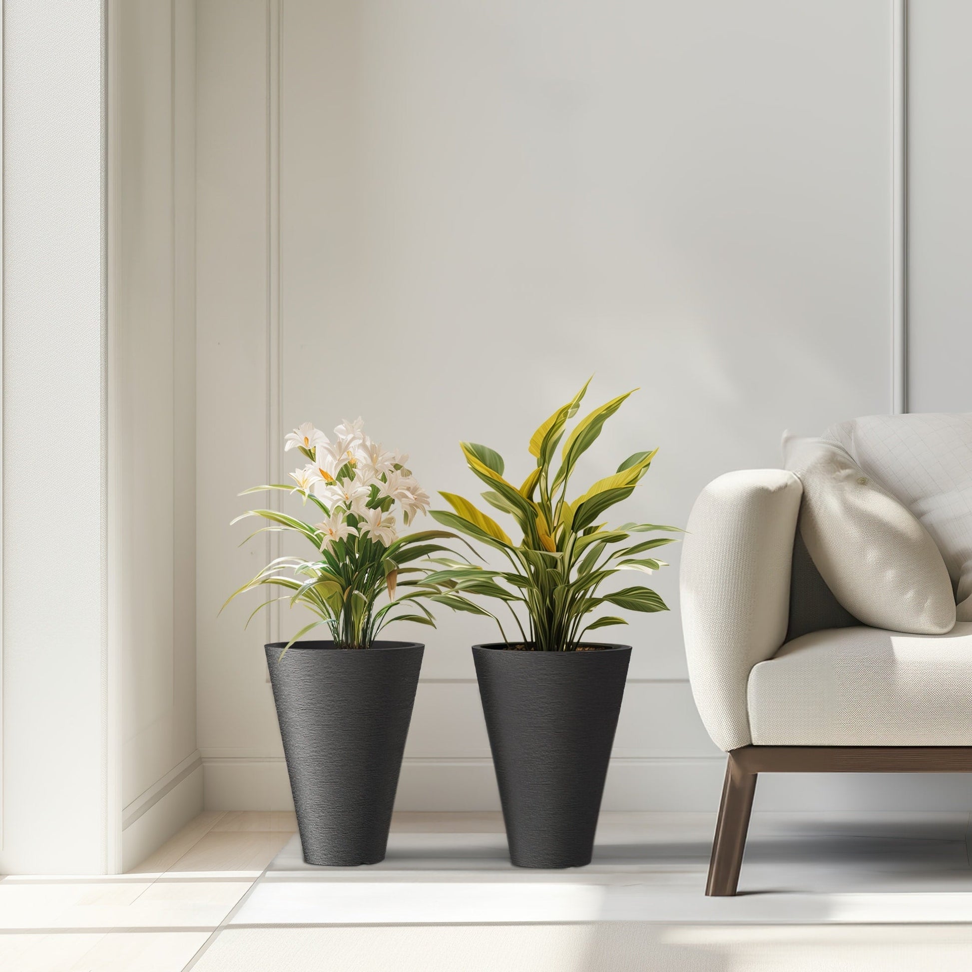 Ensemble de 2 grands pots ronds en plastique noir pour fleurs d'intérieur et d'extérieur