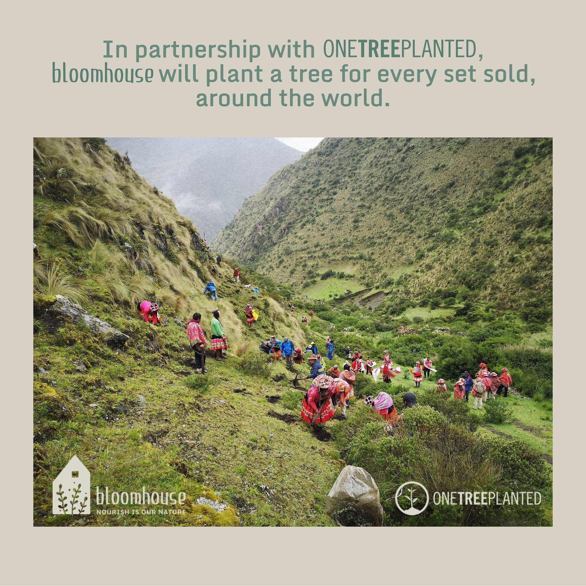 * UN ARBRE PLANTÉ PAR ENSEMBLE VENDU : En partenariat avec One Tree Planted, bloomhouse™ plantera un arbre dans le monde entier pour chaque ensemble vendu, contribuant ainsi à la santé et à la prospérité de notre planète tout en encourageant les actes de bienveillance et de croissance.