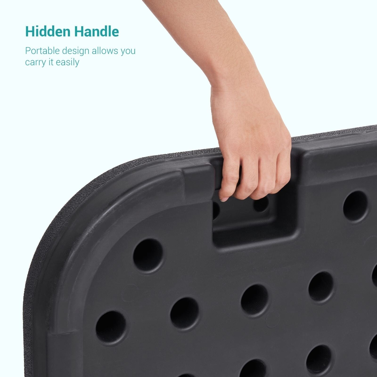 Ajoutez un socle robuste à votre nouveau parasol de terrasse ! Ne craignez plus qu'il s'envole au moindre coup de vent : ce socle de 82 kg, rempli de sable ou d'eau et fabriqué en polyéthylène haute densité, est suffisamment solide pour supporter la plupart des parasols déportés.