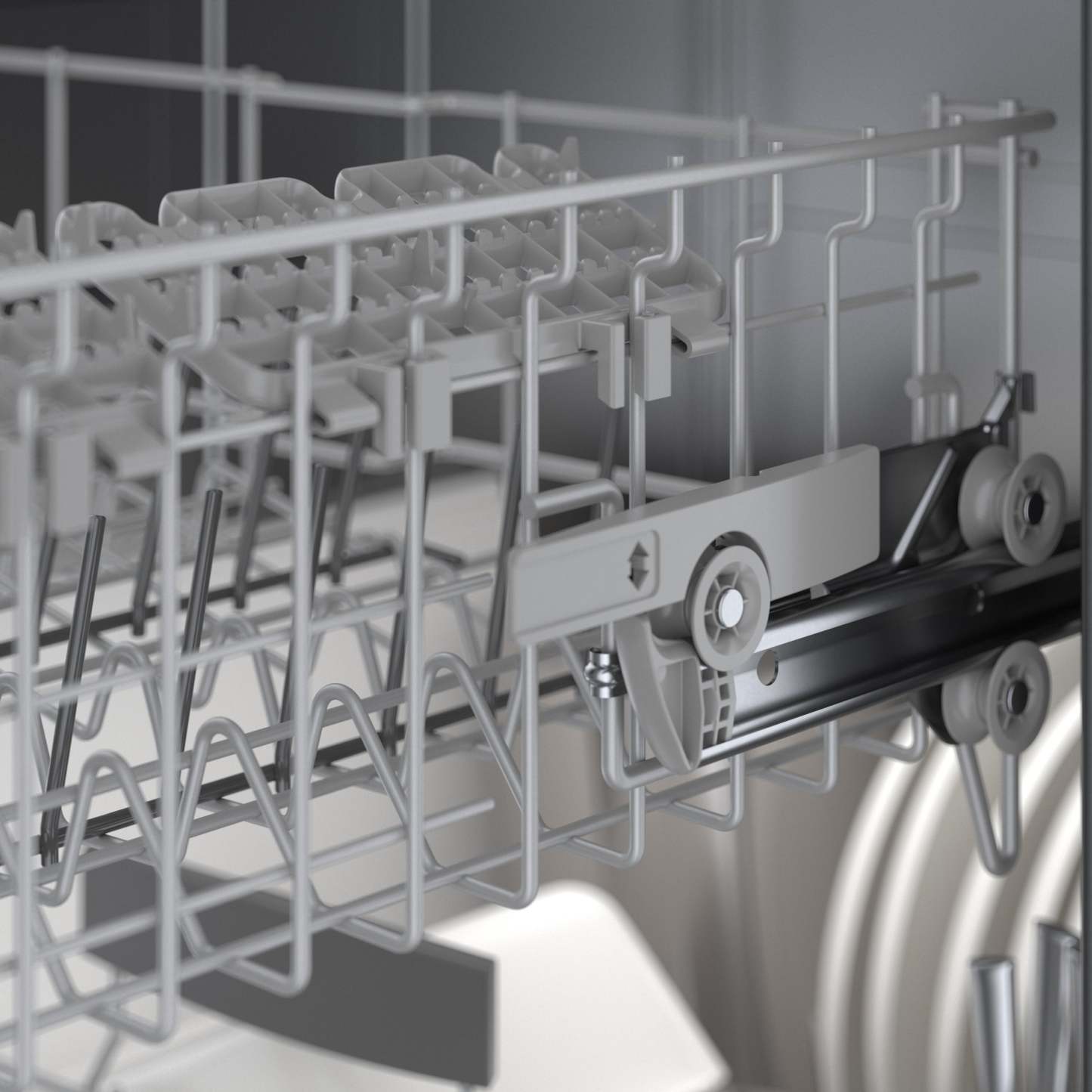 Plus besoin de frotter, de rincer ou de laver à la main – ce lave-vaisselle Bosch s'occupe facilement du nettoyage après le dîner. Les bras de lavage PowerControl™ combinés à la technologie PrecisionWash® offrent un nettoyage en profondeur et ciblé. Ensuite, CrystalDry transforme l'humidité en chaleur pour un séchage exceptionnel, même sur les plastiques. Chargez la vaisselle comme vous le souhaitez grâce à un panier supérieur réglable qui peut se déplacer sur neuf positions pratiques et un troisième panier complet parfait pour les couverts et les verres à pied. Fonctionnant à un niveau sonore chuchotant de 42 décibels, vous à peine remarquerez que le lave-vaisselle est en marche.