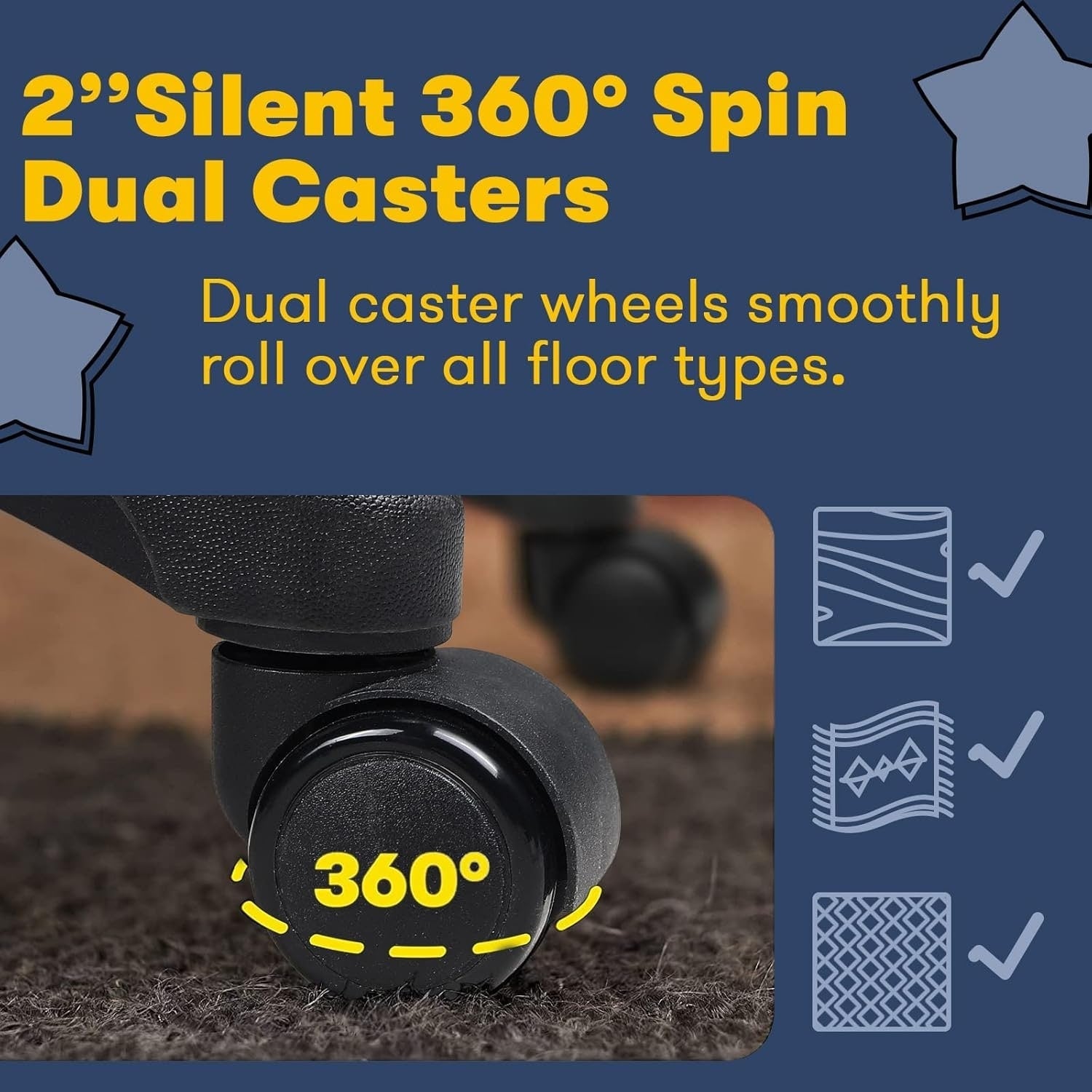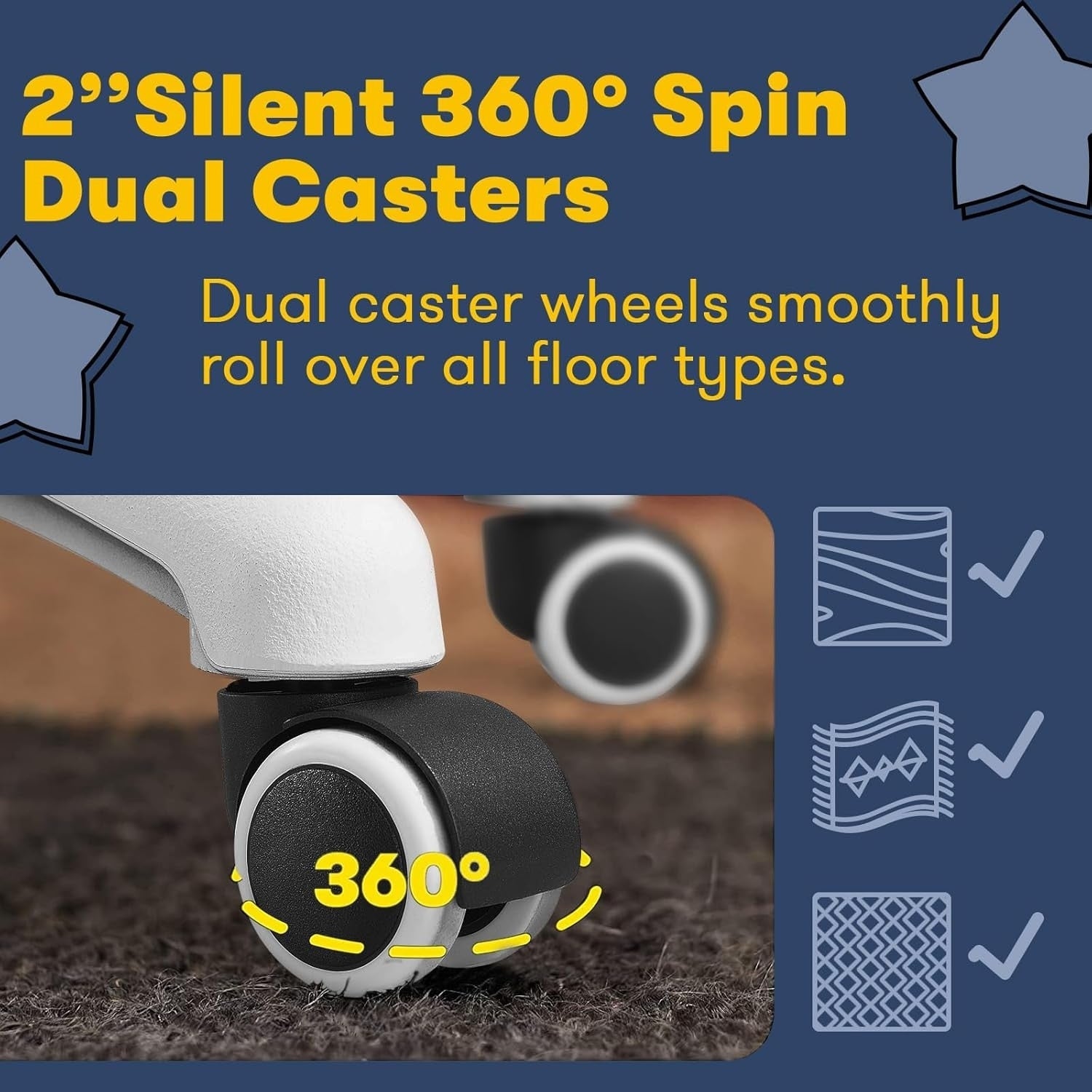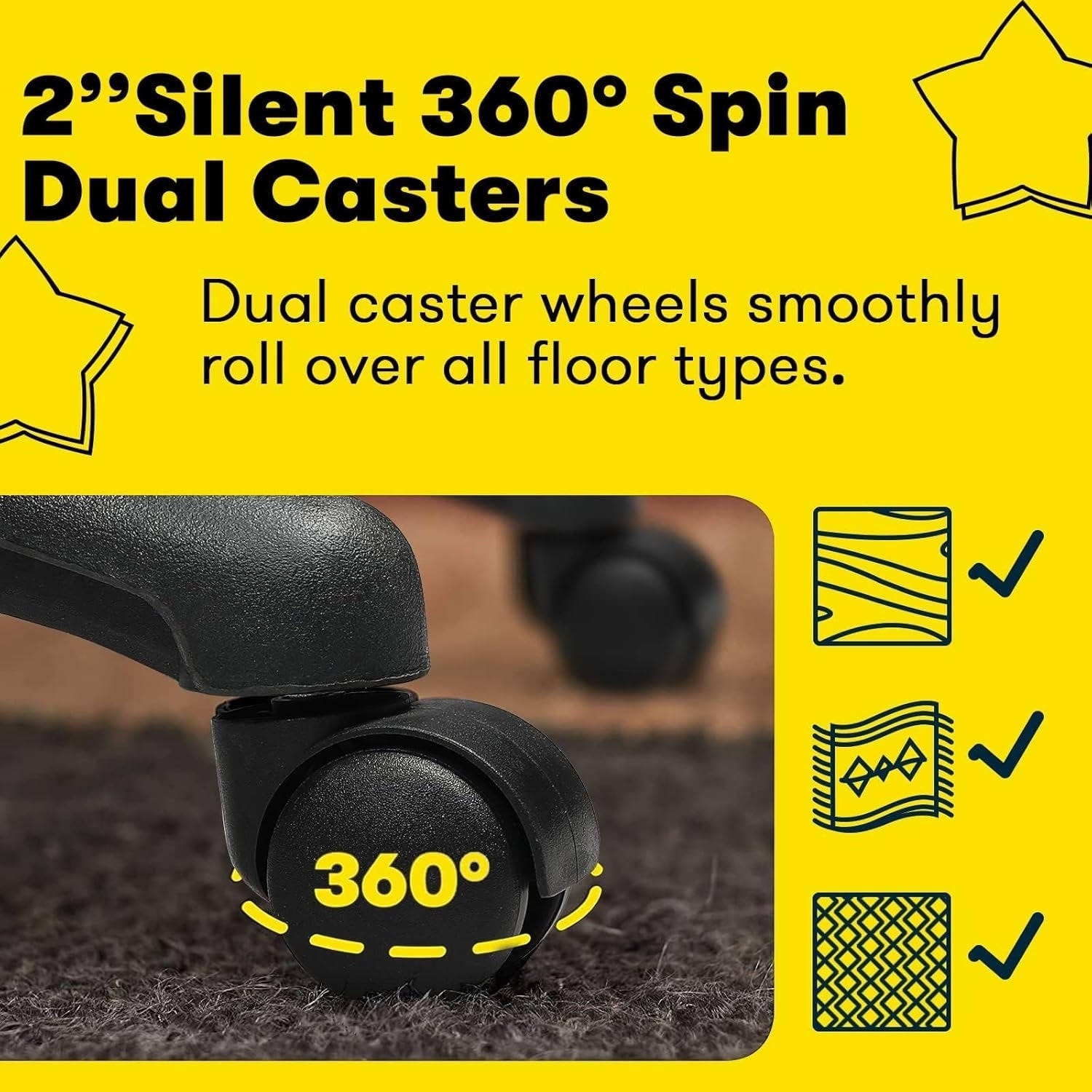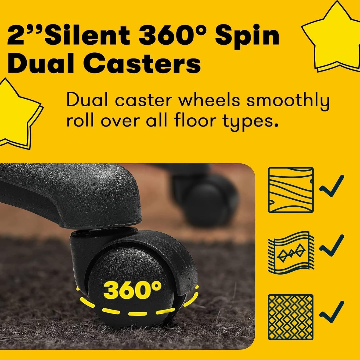 - 【Hauteur réglable avec accoudoirs】 - Ce fauteuil de bureau ergonomique est doté d'un piètement en nylon robuste, d'une hauteur réglable de 10 cm et de roulettes pivotantes à 360°. Flexible et adapté à votre environnement de travail, il est également équipé d'un système d'inclinaison avec blocage et d'un dossier inclinable à 110°. SÉCURITÉ ET CONFORT sont au rendez-vous pour des moments de détente au bureau ou à la maison.
