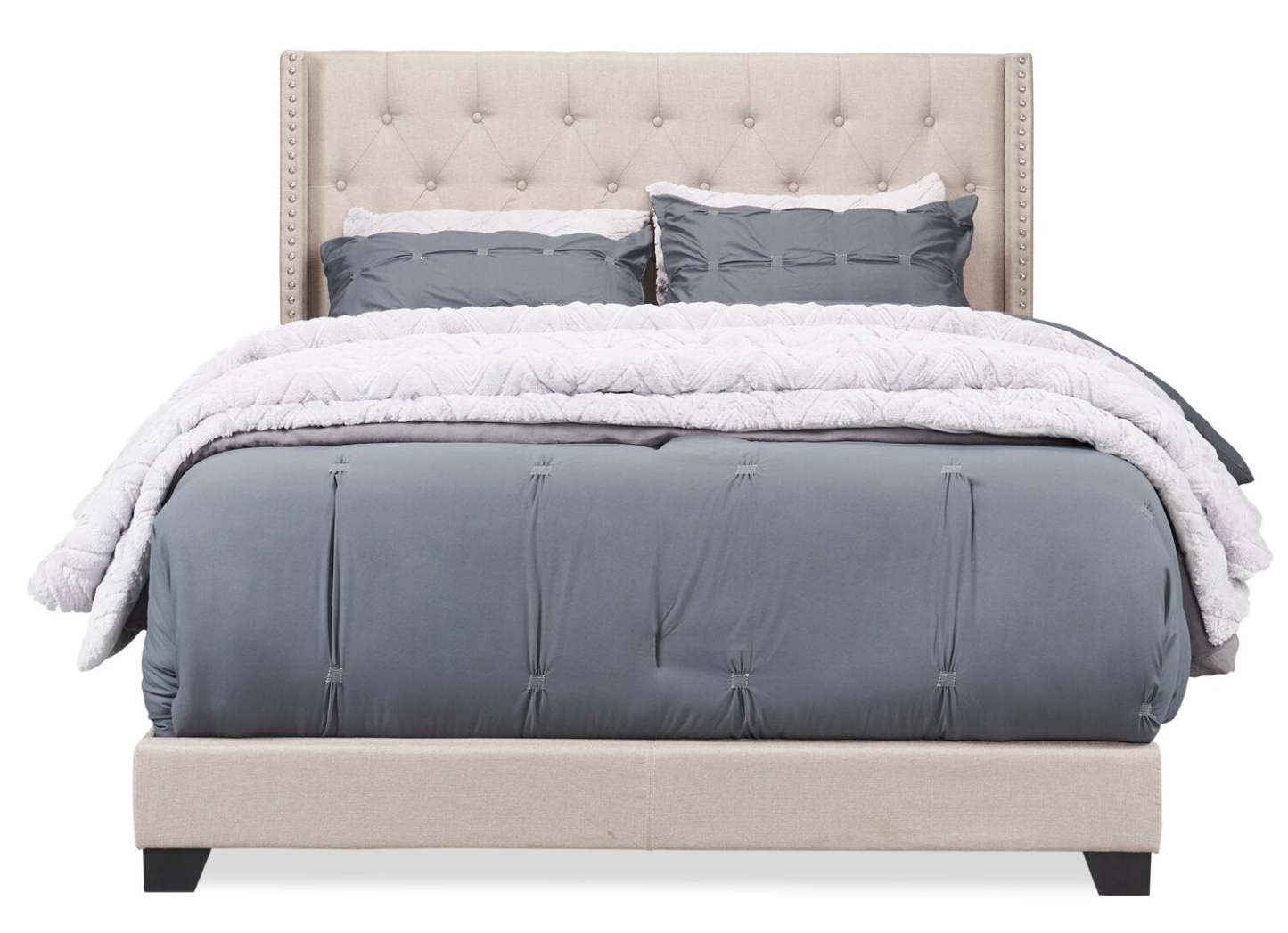 Alliant style traditionnel et matériaux modernes, le lit Brady apporte une élégance confortable à votre chambre. Son luxueux tissu gris et ses pieds noirs épurés confèrent au lit une palette neutre et tendance. Pour un effet visuel saisissant, ces éléments contemporains contrastent harmonieusement avec la tête de lit capitonnée et le capitonnage à boutons. Des clous décoratifs chromés scintillants viennent parfaire ce mariage réussi entre ancien et moderne.