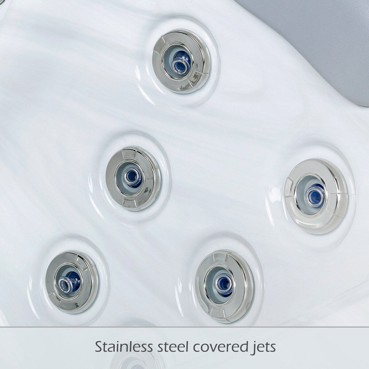 Bain à remous Buenospa Jersey 6 personnes, 46 pouces, blanc glacier, gris avec ozone et éclairage LED