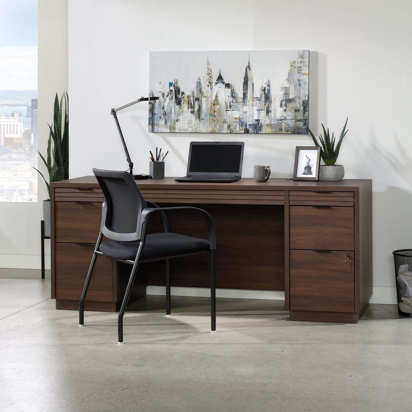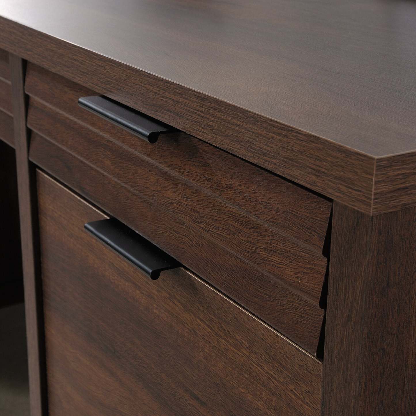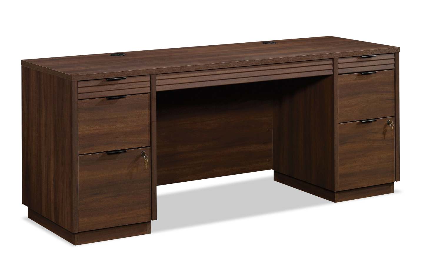 Ce bureau crédence Palo Alto offre suffisamment d'espace pour les essentiels de bureau tout en agissant comme un cabinet de classement ou une pièce d'accent. Une surface supérieure durable, résistance à la chaleur, aux taches et aux rayures, avec des bords en thermoplastique de haute qualité résistants aux chocs, rend cet espace de travail parfait pour placer des décorations d'intérieur ou votre imprimante et votre ordinateur portable. Doté d'un panneau de clavier rabattable et de six tiroirs, vos essentiels de bureau seront organisés et faciles d'accès. De plus, les deux tiroirs inférieurs contiennent des dossiers suspendus au format lettre ou légal. Avec une finition brun foncé, ce bureau est un ajout grandiose à votre espace de bureau.