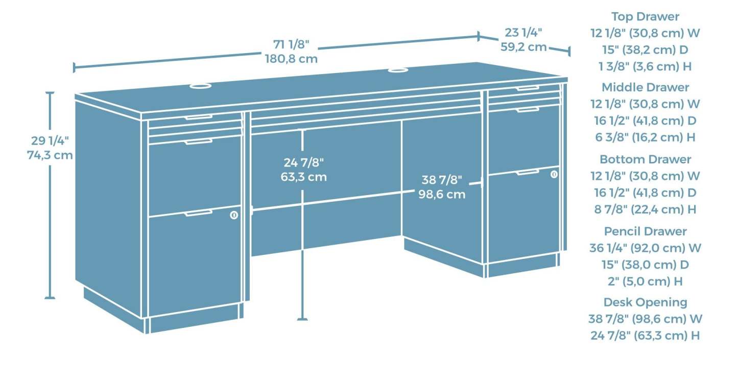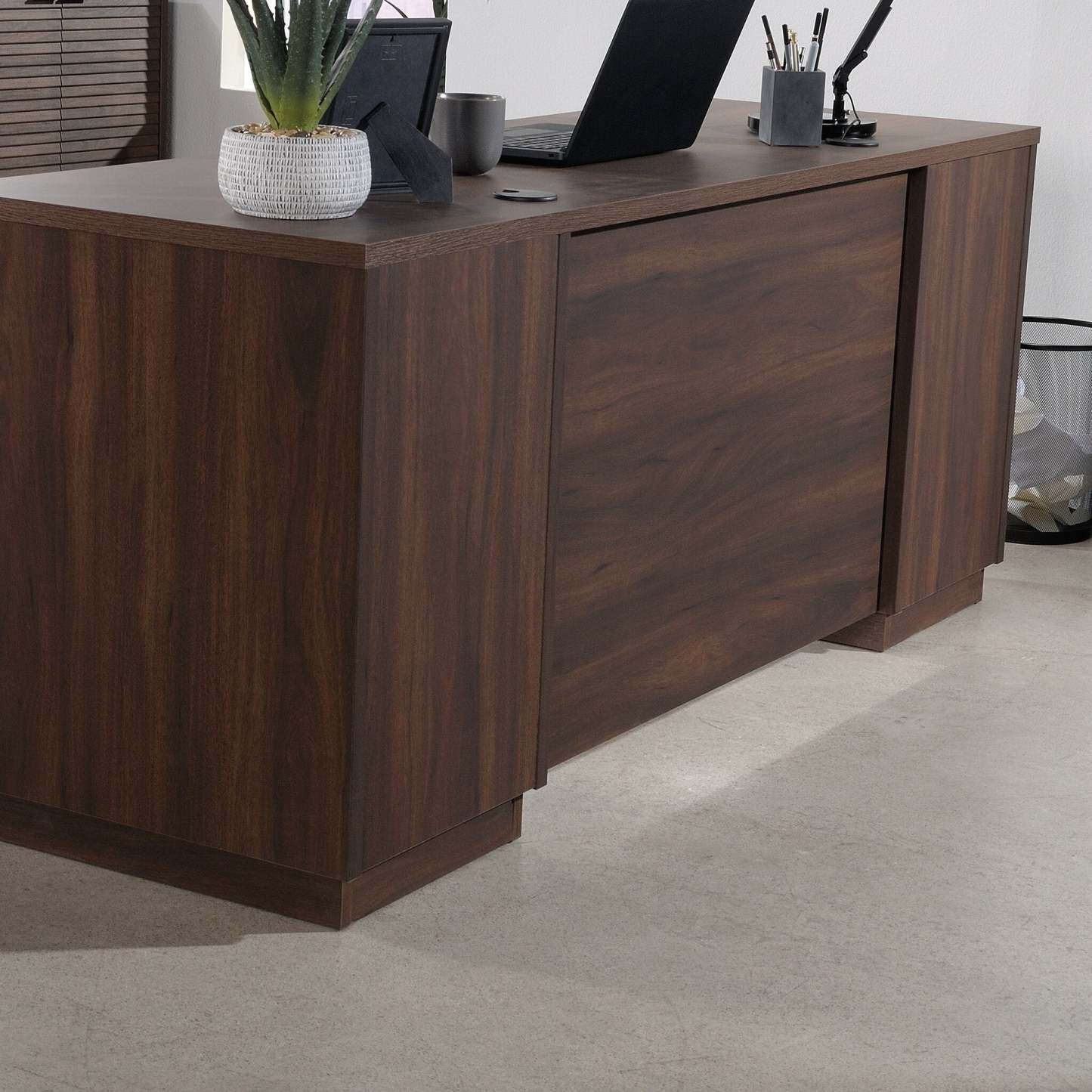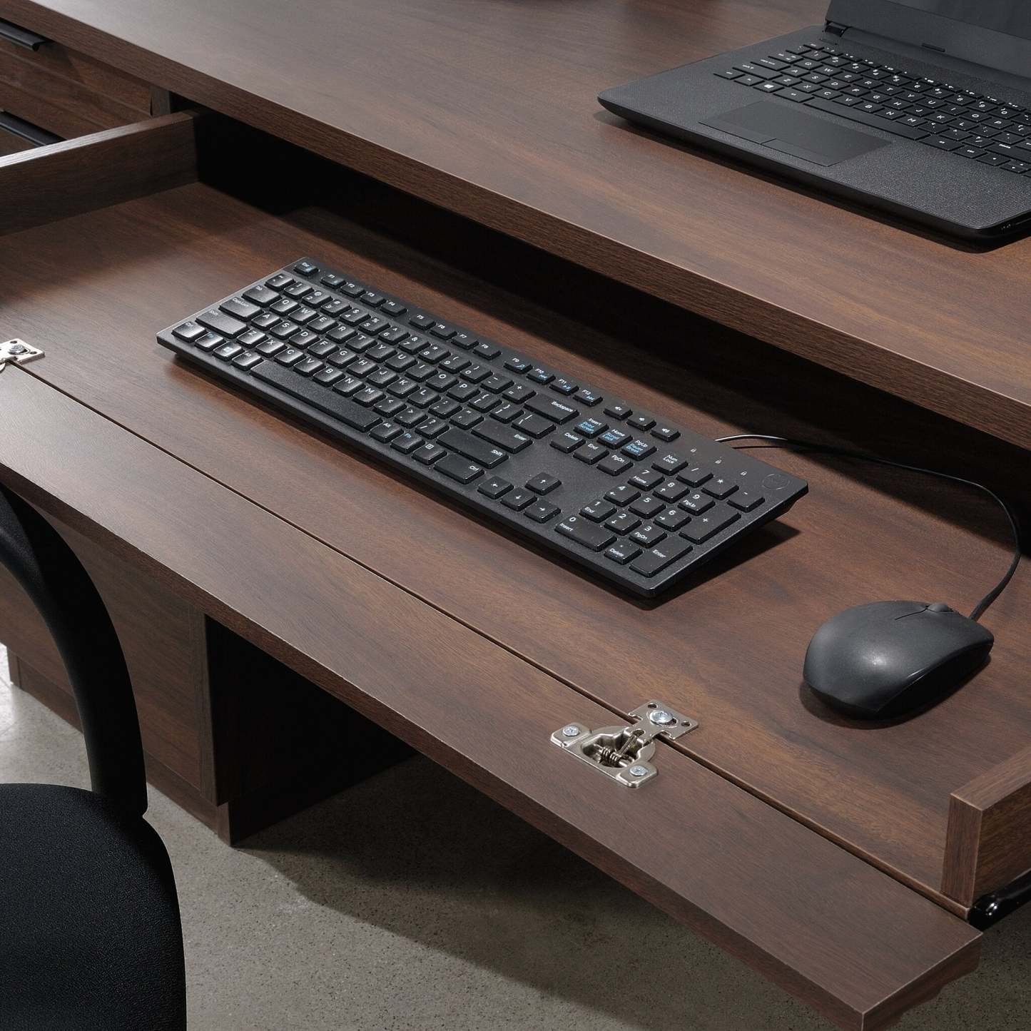 Ce bureau crédence Palo Alto offre suffisamment d'espace pour les essentiels de bureau tout en agissant comme un cabinet de classement ou une pièce d'accent. Une surface supérieure durable, résistance à la chaleur, aux taches et aux rayures, avec des bords en thermoplastique de haute qualité résistants aux chocs, rend cet espace de travail parfait pour placer des décorations d'intérieur ou votre imprimante et votre ordinateur portable. Doté d'un panneau de clavier rabattable et de six tiroirs, vos essentiels de bureau seront organisés et faciles d'accès. De plus, les deux tiroirs inférieurs contiennent des dossiers suspendus au format lettre ou légal. Avec une finition brun foncé, ce bureau est un ajout grandiose à votre espace de bureau.