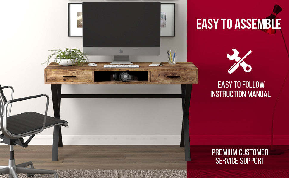 Bureau d’ordinateur de 47 po avec 2 tiroirs et 1 tablette - bois recyclé brun avec métal noir