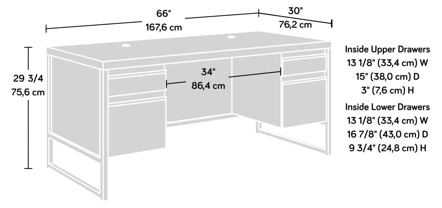 Bureau de direction Manhattan Gate de 65,98 po de qualité commerciale à 4 tiroirs - chêne mystique