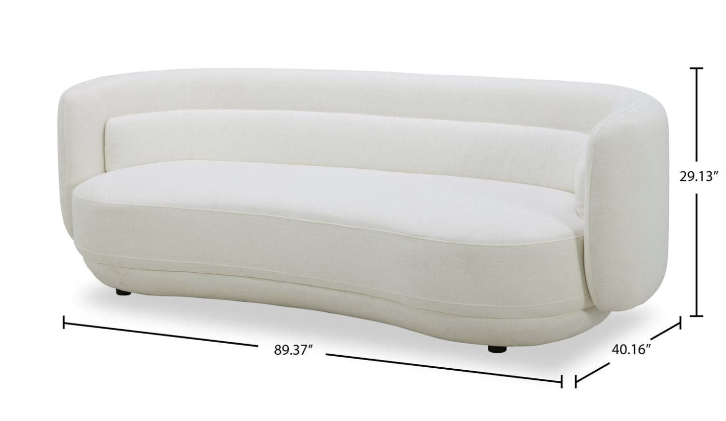 Attirez l'attention de vos invités avec le Davvero dans toute sa splendeur. Cet article exquis est énergique, riche en style et dégage du luxe, le rendant tout sauf subtil avec son design audacieux. Un dossier incurvé et des sièges arrondis offrent une apparence unique qui ne manquera pas de se démarquer. Enveloppé dans un tissu blanc doux et durable et rembourré avec des coussins en mousse haute densité, vous et vos invités vivez un confort et un soutien inégalés. Faites du Davvero le point central de votre maison et l'endroit privilégié pour des rassemblements organisés et des conversations fascinantes.