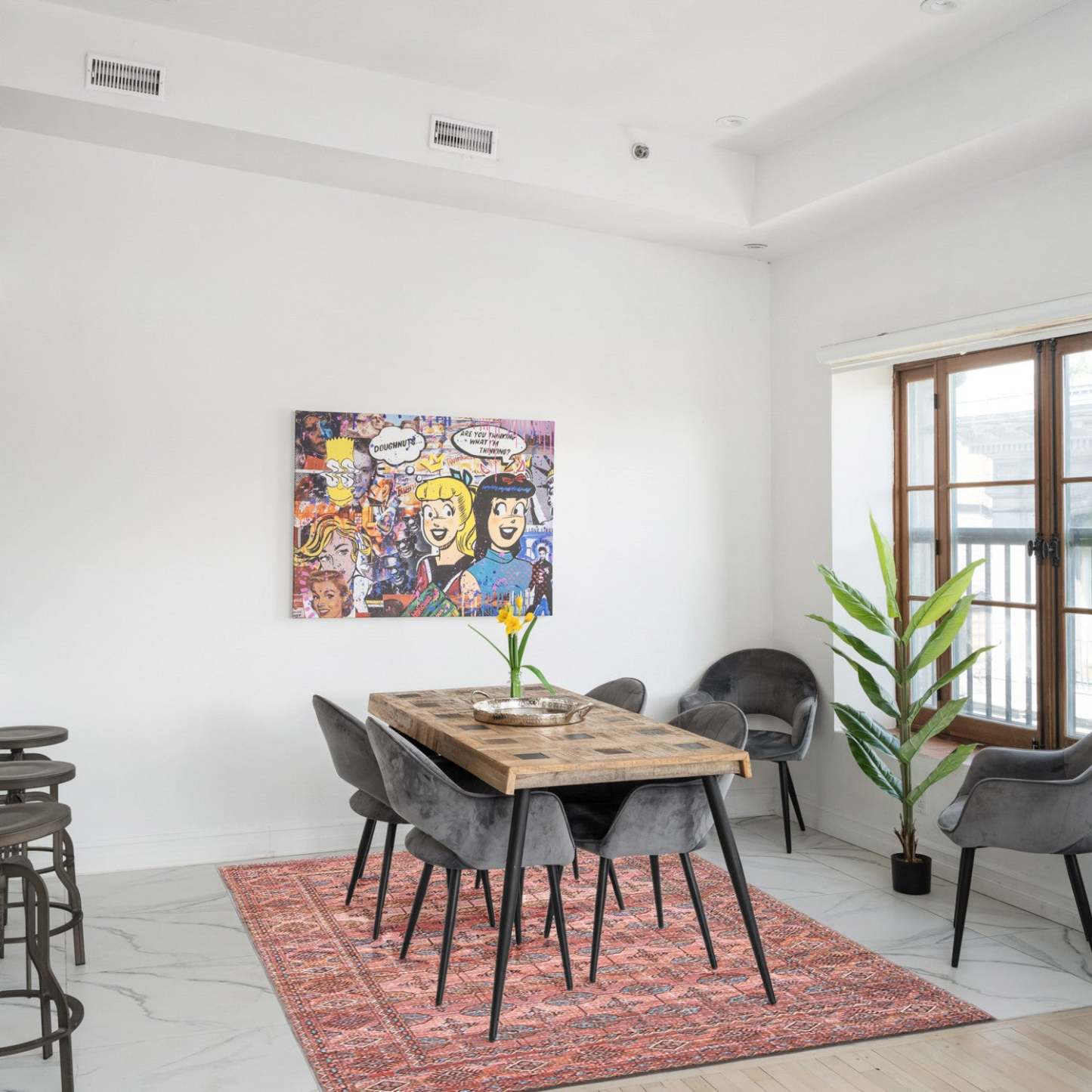 La collection Rosamond présente des designs persans orientaux traditionnels imprimés sur des matériaux durables, résistants à la décoloration et à la perte de fibres, parfaits pour votre décoration préférée.