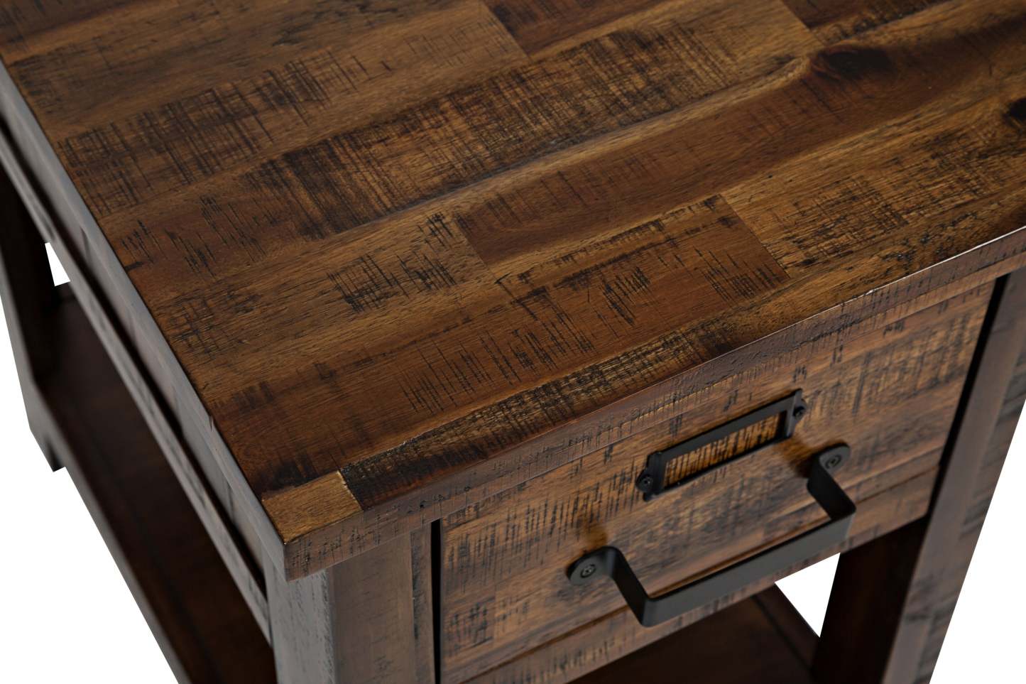 Laissez-vous séduire par le style intemporel de cette magnifique table d'appoint Casey. Le bois massif d'acacia et son placage s'allient pour créer un contraste de teintes, offrant un rendu robuste et polyvalent. La finition vieillie du bois révèle un style industriel affirmé, idéal pour apporter du caractère à n'importe quelle pièce. Dotée d'une poignée en métal et d'un porte-étiquette sur le tiroir, cette table élégante dégage un charme vintage indéniable. Rangez télécommandes, piles et autres petits objets dans le tiroir profond, tandis que l'étagère inférieure accueille livres et objets de décoration.