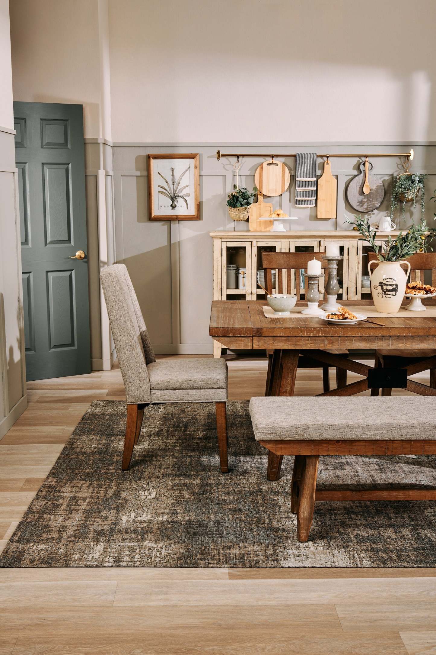 Doté d'une texture subtile à tissage plat et d'un design usé, ce tapis de style industriel Cathedral vous donne l'impression d'avoir été chéri pendant plusieurs générations. Ses fibres épaisses et étroitement tissées résistent bien à l'usure, vous pouvez donc être sûr d'utiliser ce tapis même dans les salons les plus fréquentés. Les stries grises neutres, semblables à des lignes sur une formation rocheuse, captent différentes nuances de gris et de brun et s'accordent bien avec de nombreuses finitions en bois.