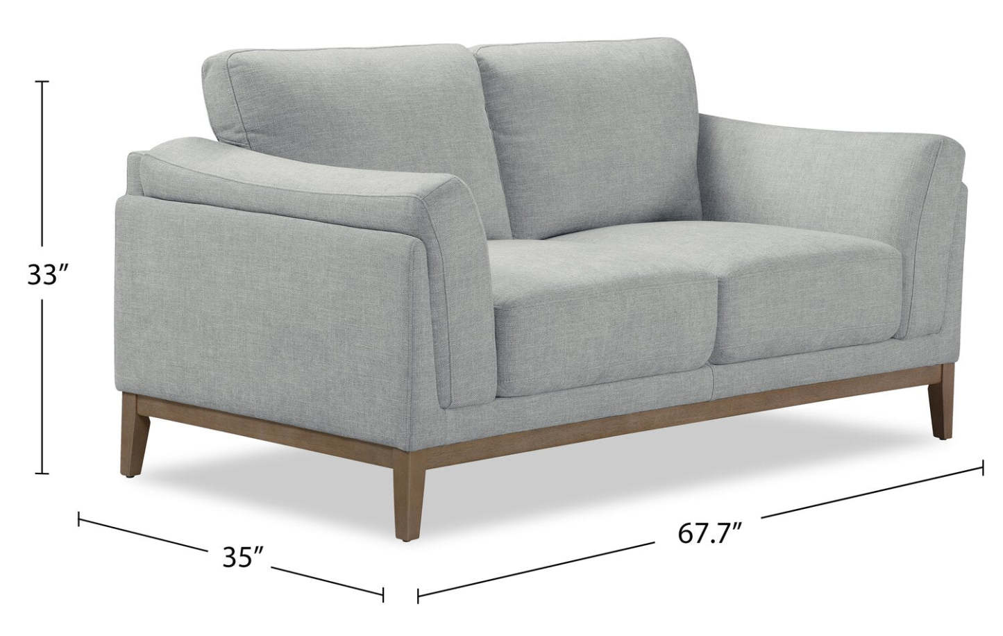 Causeuse Valley de 67,7 po en tissu avec base et pattes en hévéa - grise
