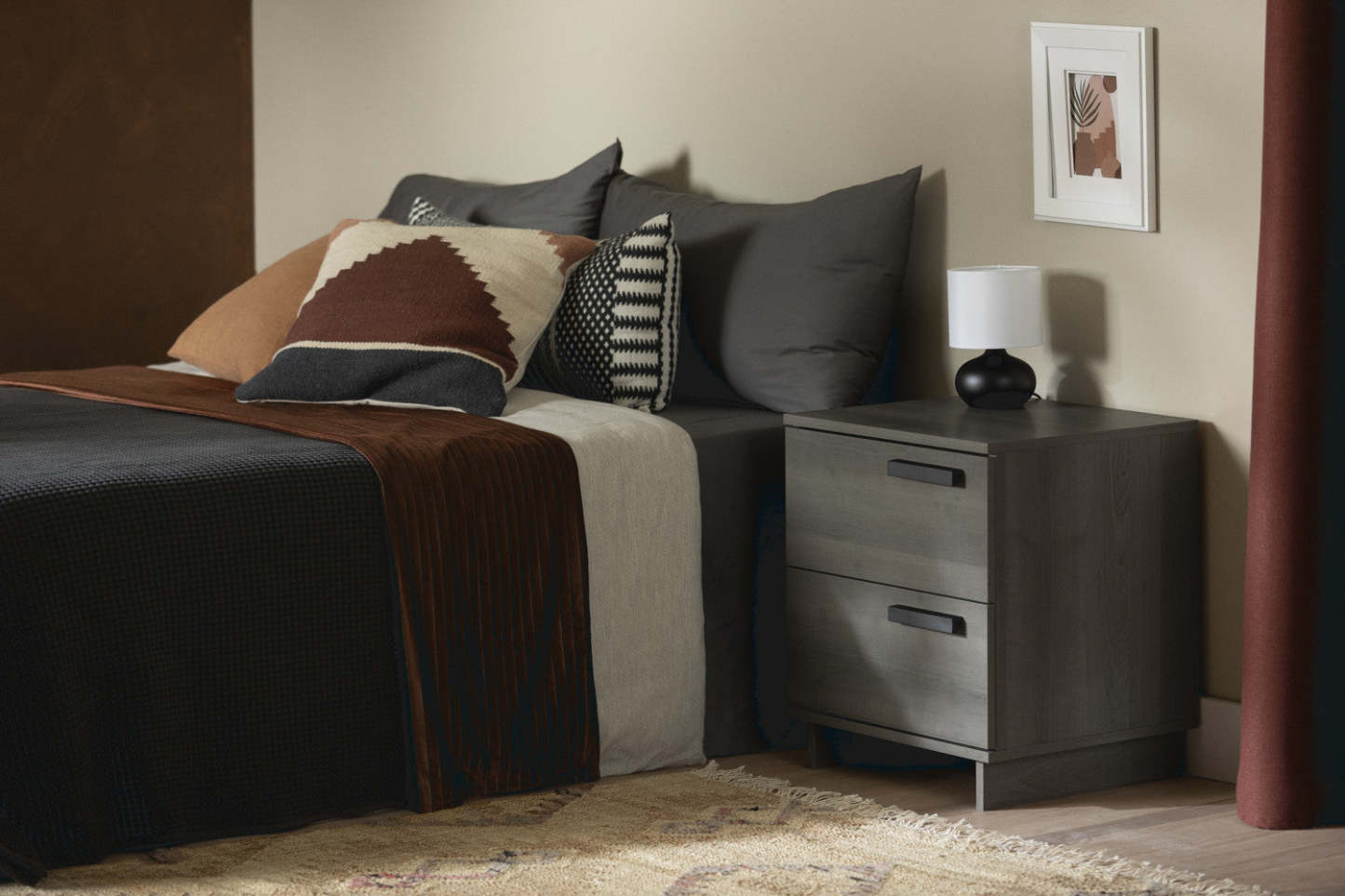 Imaginez la table de chevet Cavalleri dans votre chambre… Son style scandinave, à la fois simple et raffiné, s'intègre harmonieusement à tous les décors. Elle apporte cette touche spéciale qui rend votre espace encore plus accueillant. De plus, cette table de chevet se marie à merveille avec les autres meubles de la collection. Grâce à ses deux tiroirs, dites adieu au désordre sur votre table de chevet ! Glisser un livre, votre chargeur de téléphone ou ces petits objets qui traînent toujours devient un jeu d'enfant. Et le meilleur ? Les tiroirs coulissent en douceur sur des glissières métalliques.