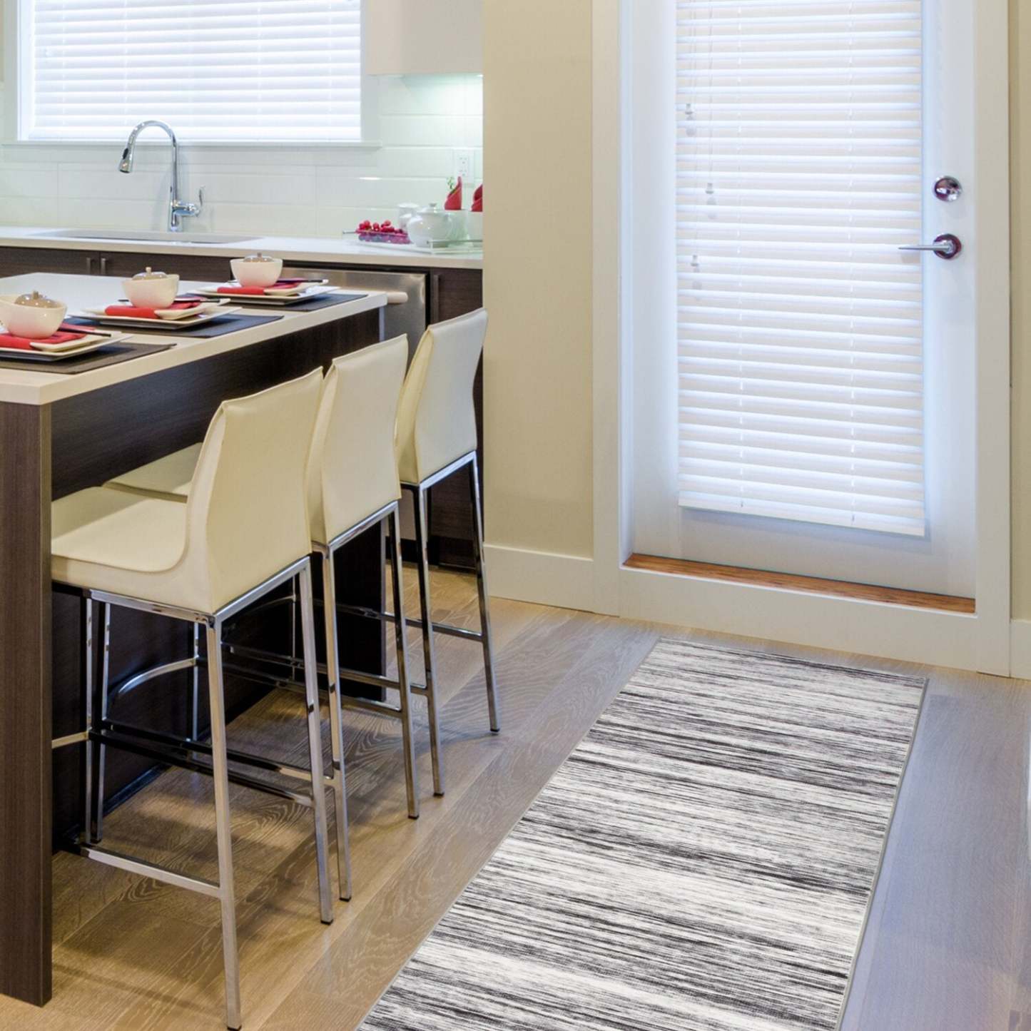 Tapis de couloir lavable Ceren gris – 2' x 7' | Tapis longue Ceren grise lavable - 2 pi x 7 pi