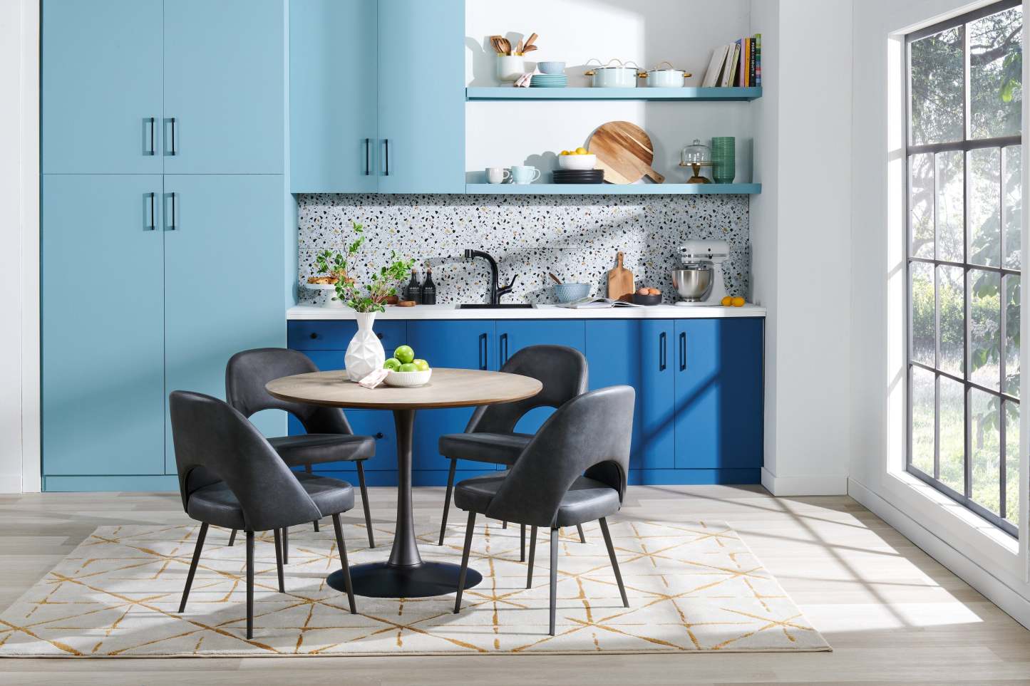 Ajoutez une touche supplémentaire de style à votre espace de repas avec cette chaise de salle à manger Bay. Le revêtement en simili cuir recouvre une mousse haute densité pour créer un siège surrembourré dans lequel vous adorerez vous blottir. Un arc arrondi se courbe doucement autour et sous le siège pour offrir un soutien supplémentaire à votre dos supérieur et à vos côtés, tout en créant un espace ouvert à l'arrière du siège. Des pieds en métal pointus et revêtus de poudre rayonnent à partir du siège pour vous maintenir assis en toute sécurité et avec élégance. Ajoutez la Bay à votre maison et contribuez à créer des souvenirs dorés lors des repas.
