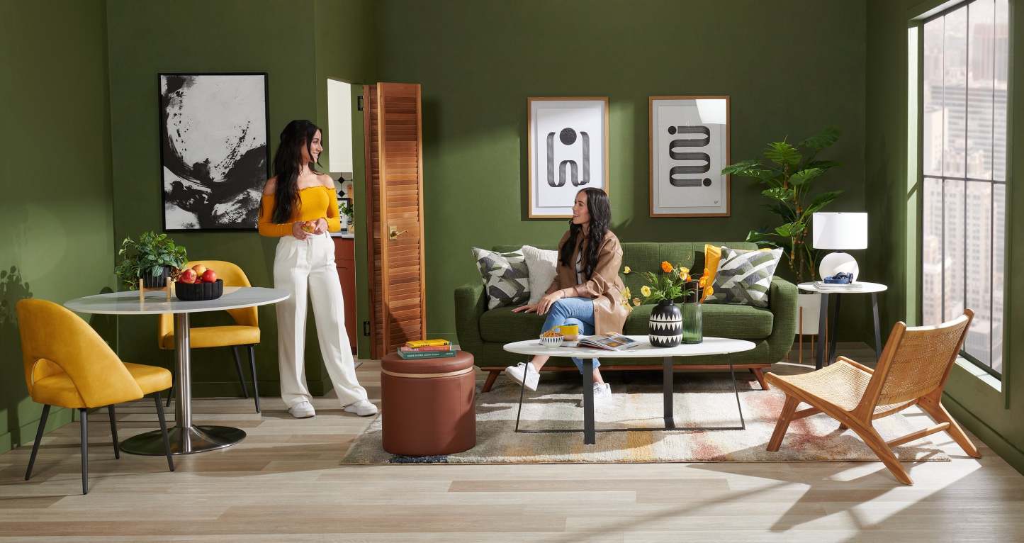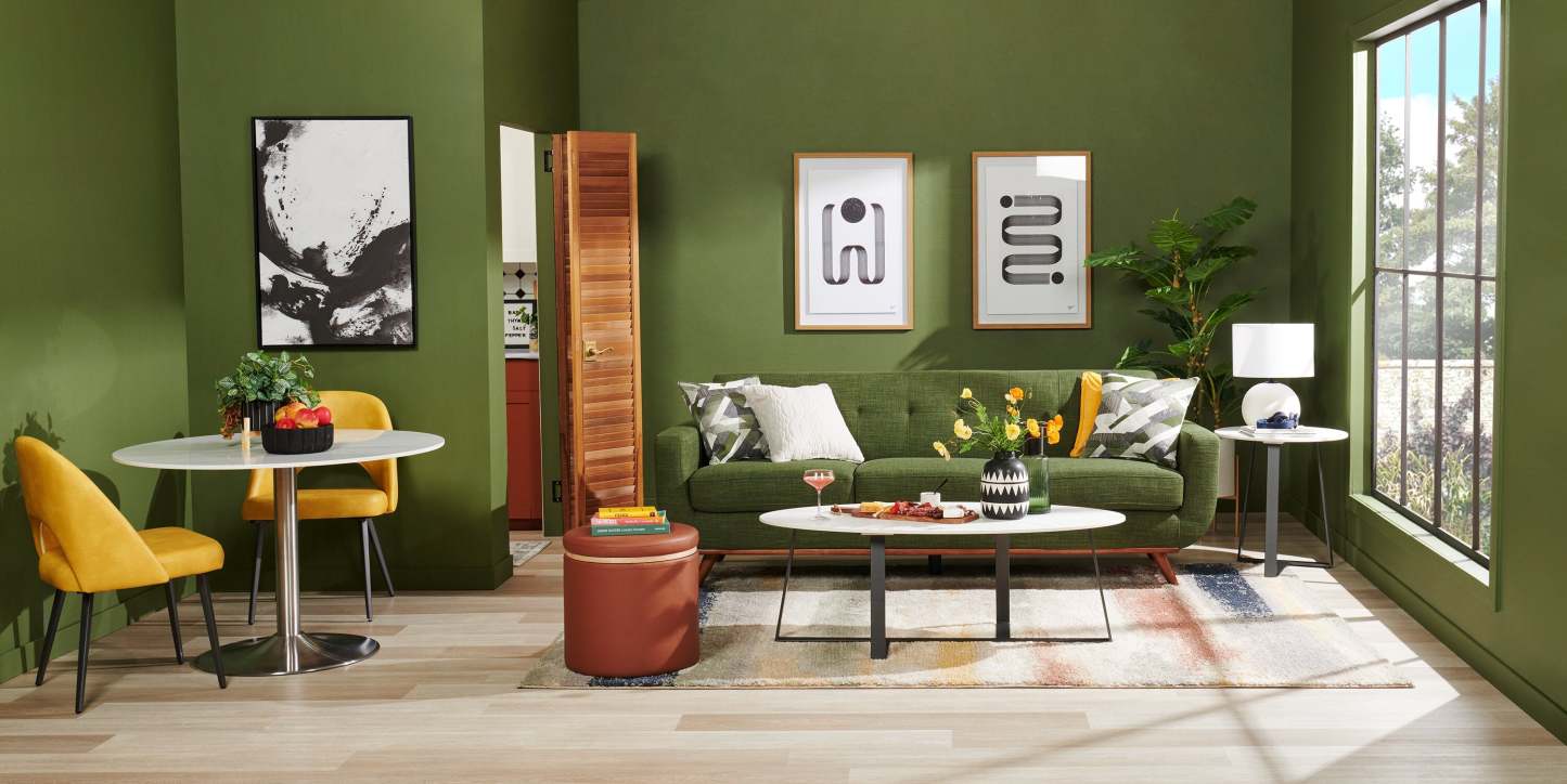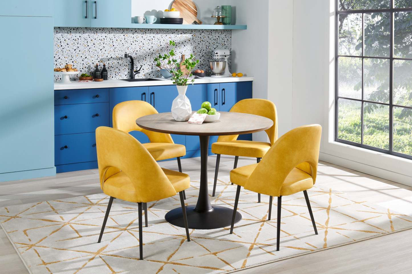 Chaise de salle à manger Bay de Kort & Co. en tissu de cuir végétalien et en métal - moutarde