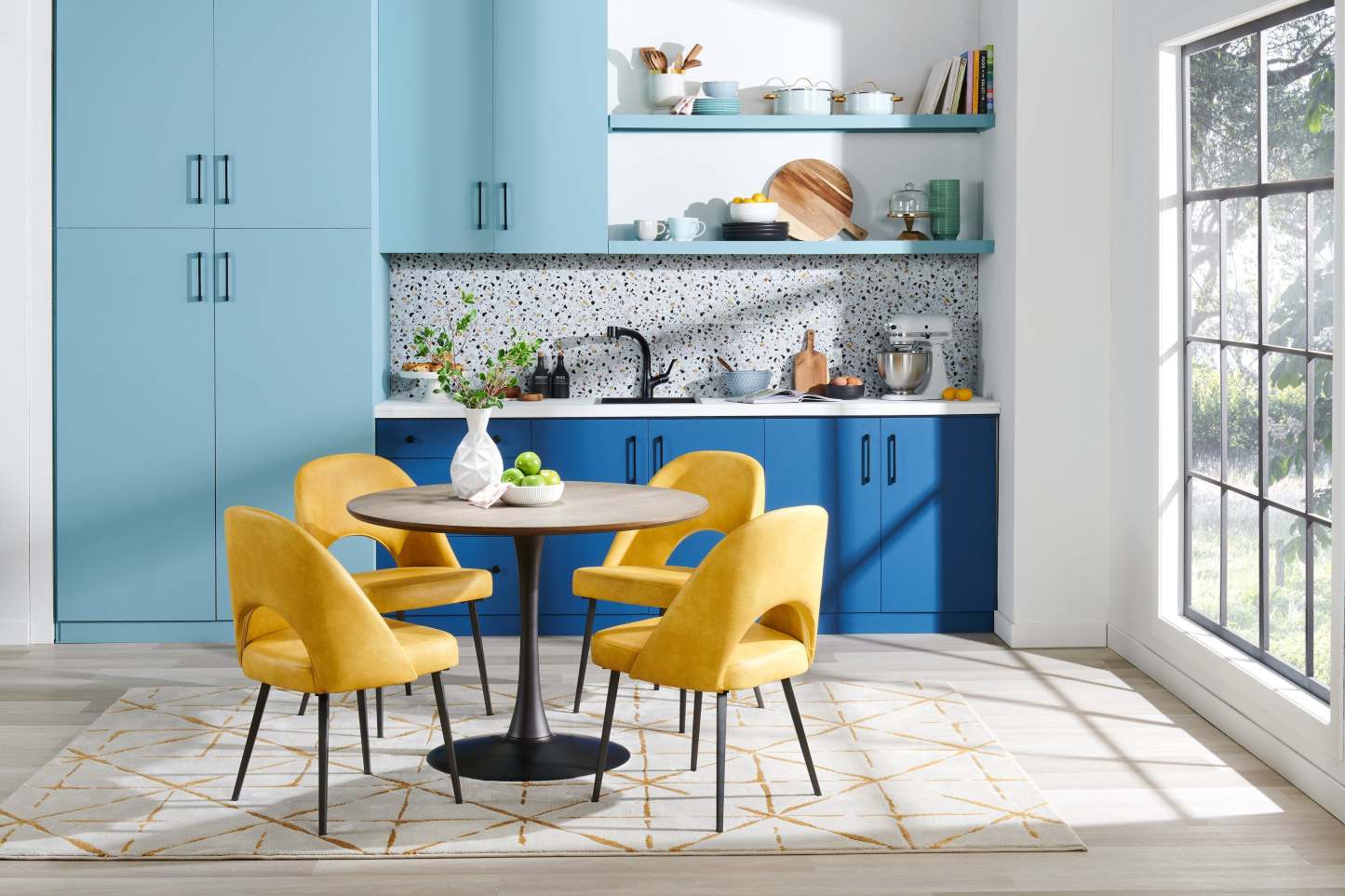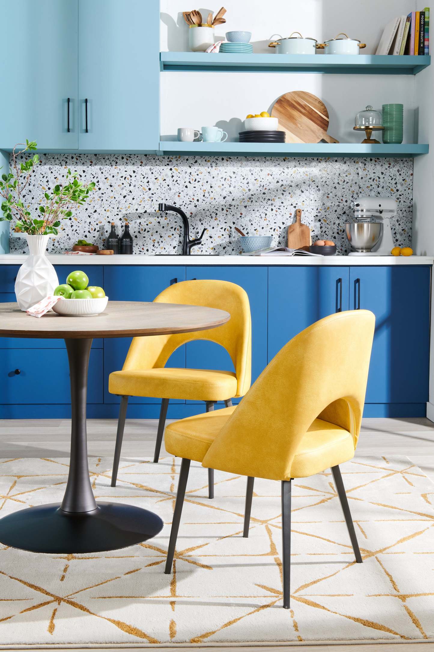 Ajoutez une touche supplémentaire de style à votre espace de repas avec cette chaise de salle à manger Bay. Le revêtement en simili cuir recouvre une mousse haute densité pour créer un siège surrembourré dans lequel vous adorerez vous blottir. Un arc arrondi se courbe doucement autour et sous le siège pour offrir un soutien supplémentaire à votre dos supérieur et à vos côtés, tout en créant un espace ouvert à l'arrière du siège. Des pieds en métal pointus et revêtus de poudre rayonnent à partir du siège pour vous maintenir assis en toute sécurité et avec élégance. Ajoutez la Bay à votre maison et contribuez à créer des souvenirs dorés lors des repas.