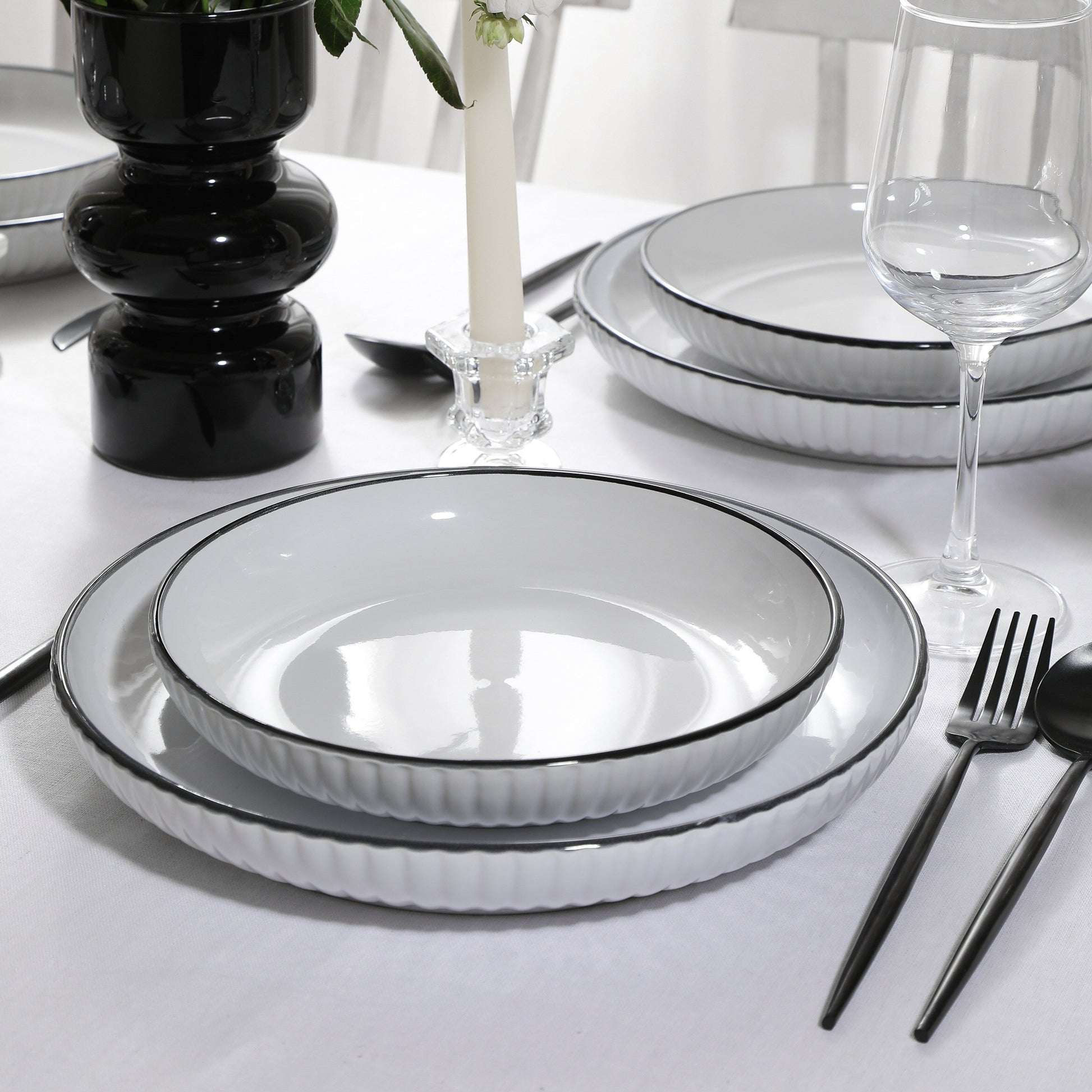 - Service pour 4 ou 8 personnes : L'ensemble comprend 16/32 pièces complètes avec des assiettes plates de 10,5 pouces, des assiettes à salade de 8 pouces, des bols à soupe/céréales de 25,7 oz liq. de 6,02 pouces de diamètre et des bols à ramen de 40,4 oz liq. de 8,11 pouces de diamètre.