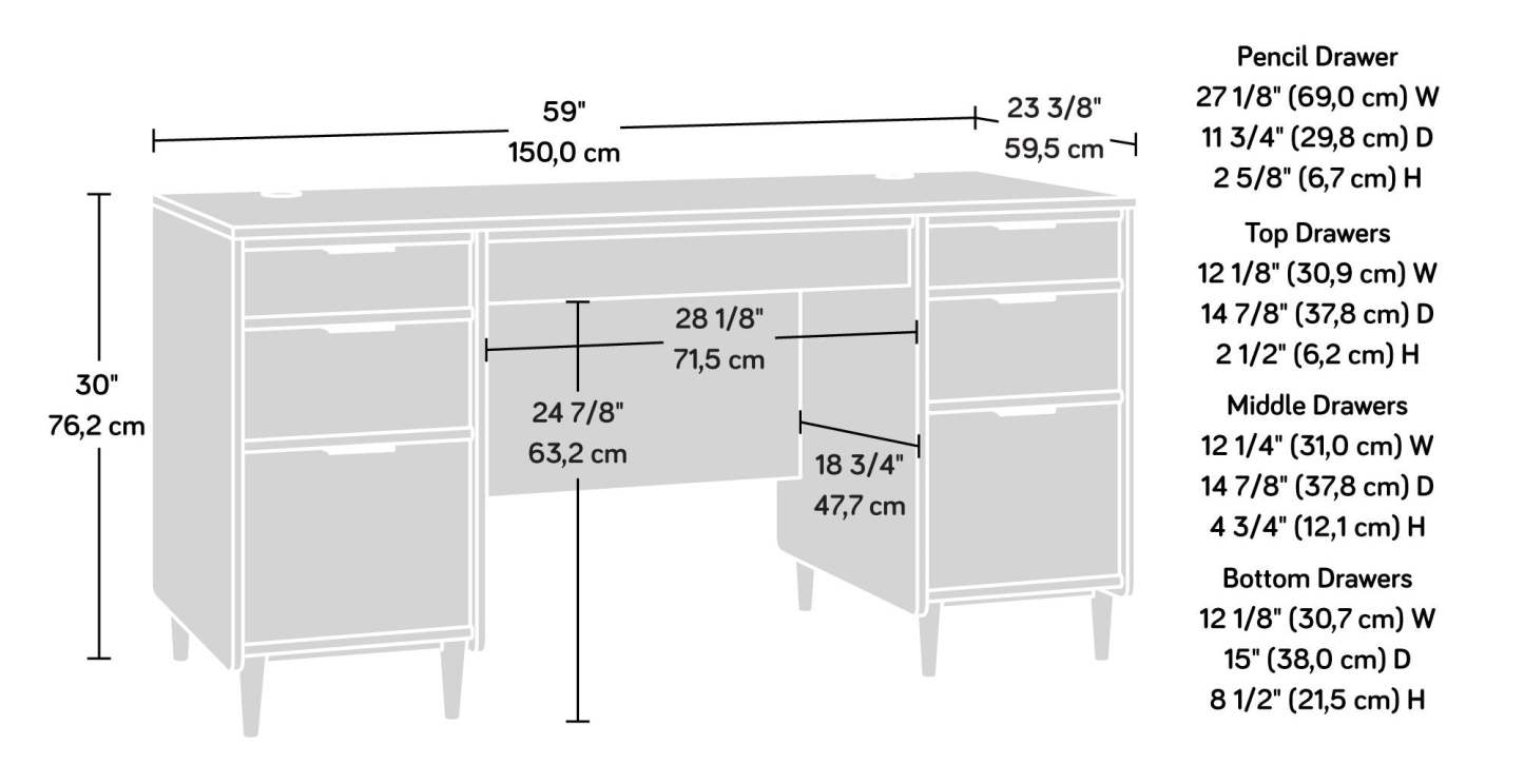 Imposant et professionnel, ce bureau exécutif Clifford Place est un élément central élégant pour votre bureau. En tant qu'espace de travail de style moderne du milieu du siècle, il est aussi fonctionnel que stylé, offrant beaucoup d'espace pour l'affichage et le rangement. Doté d'une étagère pour le clavier et de deux tiroirs à dossiers qui contiennent des fichiers suspendus au format lettre, vous serez prêt à travailler en un rien de temps. Quatre tiroirs supplémentaires gardent vos notes autocollantes, stylos et plus à portée de main, tandis que les trous de grommet sur le bureau empêchent un enchevêtrement de chargeurs ou de câbles d'alimentation. Fini dans une teinte naturelle, ce bureau exécutif ajoute une touche moderne et épurée à votre maison.