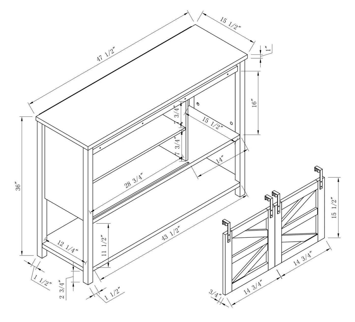Apportez une touche champêtre à votre intérieur avec ce meuble d'appoint Corbin. Ses portes coulissantes de style grange lui confèrent un charme rustique, tandis que le chêne noyer et les montants de porte foncés contrastants s'harmonisent à merveille pour une élégance affirmée. Ouvrez les portes de chaque côté pour découvrir une étagère réglable et un compartiment ouvert. De plus, la grande étagère inférieure offre encore plus de possibilités de rangement. Grâce à sa fonctionnalité et à sa conception, ce meuble peut non seulement servir de meuble d'appoint, mais aussi de console, de desserte ou de desserte. Le Corbin est un incontournable pour une décoration rustique réussie.
