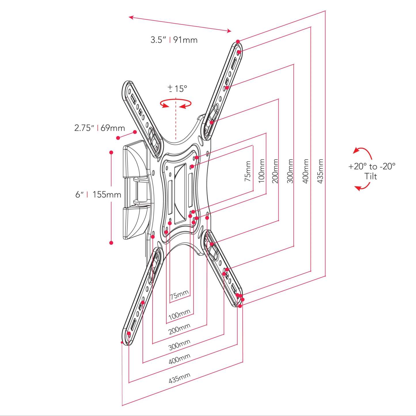 CorLiving Support mural à mouvement complet en X pour téléviseurs de 23 à 55 pouces - MPM-806|Support mural CorLiving réglable de 23 po à 55 po pour téléviseur à écran plat - MPM-806|MPM806WM