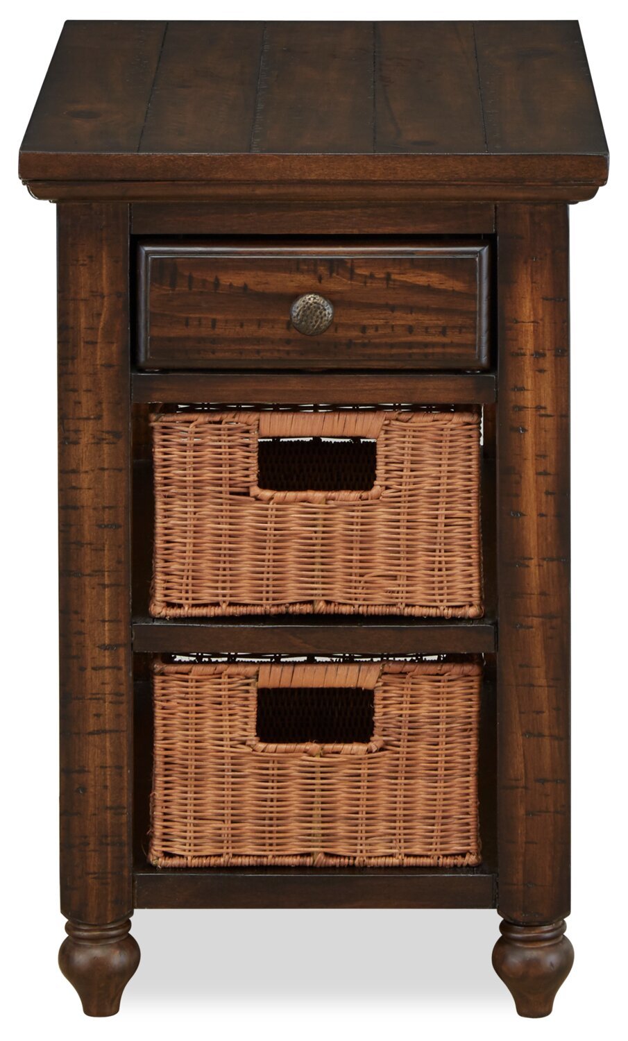 Mettez vos pieds en l'air et détendez-vous avec le style maison de plage grâce à cette table d'appoint Cottage Lane. L'attrait du placage de pin et des matériaux solides offre une sensation rustique et naturelle, tandis que l'ajout de paniers en rotin amovibles apporte une touche côtière. Le tiroir offre une option pour désencombrer, tandis que les deux paniers en dessous garantiront que vous avez suffisamment d'espace pour ranger les télécommandes et les magazines. Avec une couleur café chaude et un grain de bois profond, Cottage Lane est un ajout facile et décontracté à votre espace de vie.