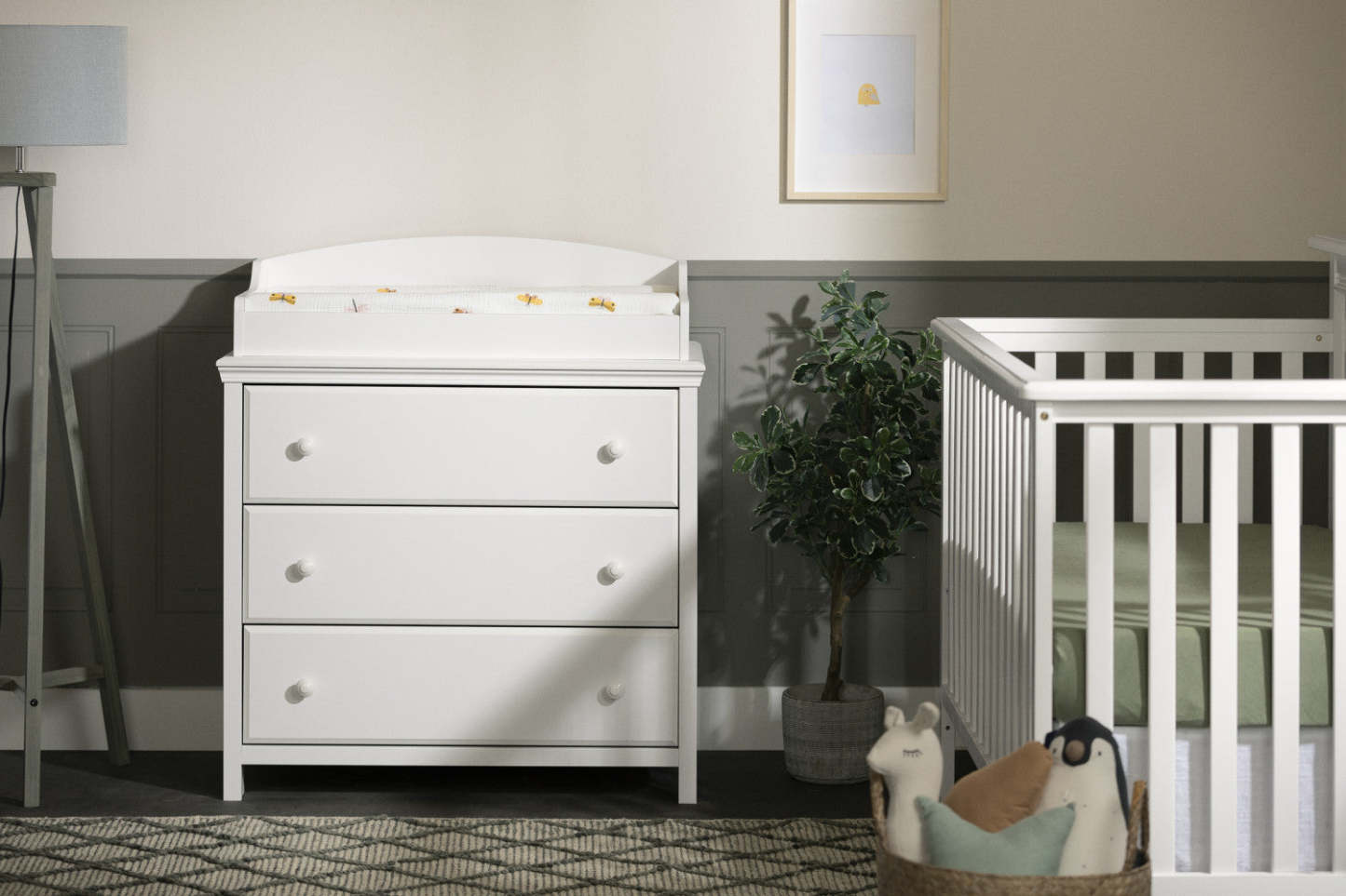 Un style élégant pour votre tout-petit. Solution idéale pour les petits espaces, cette table à langer compacte de la collection Cotton Candy offre tout le nécessaire : table à langer et commode. Ses 3 grands tiroirs offrent un espace de rangement généreux pour les vêtements, le linge de lit et les jouets. Le bord supérieur biseauté et les cadres des tiroirs confèrent à ce meuble un charme unique. Lorsque bébé grandit et n'a plus besoin de la table à langer, il suffit de retirer le matelas à langer pour la transformer en commode. Cette table à langer convient parfaitement aux bébés jusqu'à 13,6 kg. Solution de rangement astucieuse, elle est dotée de 3 tiroirs spacieux avec glissières métalliques pour une ouverture et une fermeture silencieuses et faciles. Vous pourrez y ranger vêtements, linge de lit et accessoires de bébé. Lorsque bébé grandit et n'a plus besoin de la table à langer, il suffit de retirer le matelas à langer pour la transformer en une élégante commode pour sa chambre.
