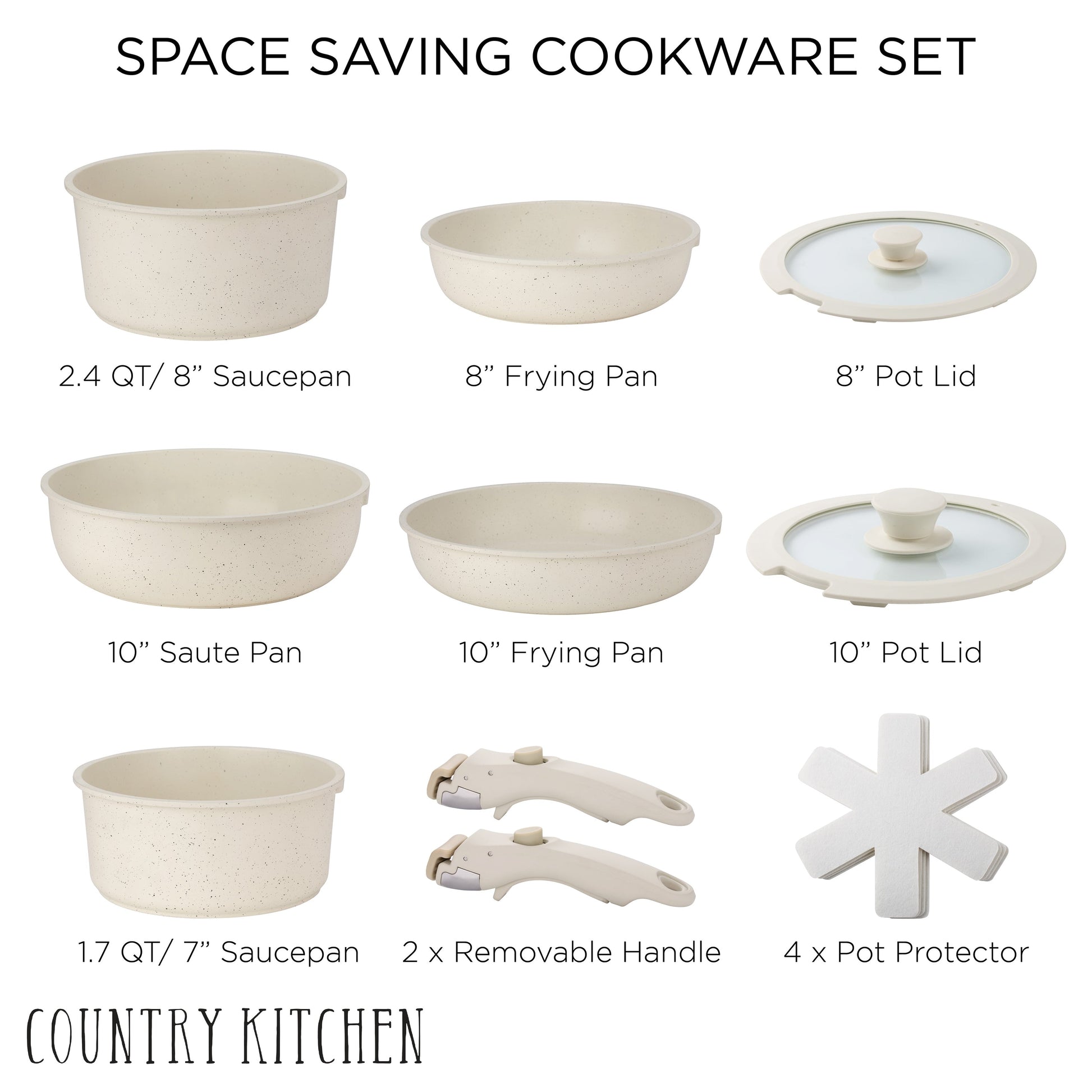 Batterie de cuisine Country Kitchen pour camping-car - 13 pièces de casseroles et poêles en aluminium avec poignée amovible, compatible four