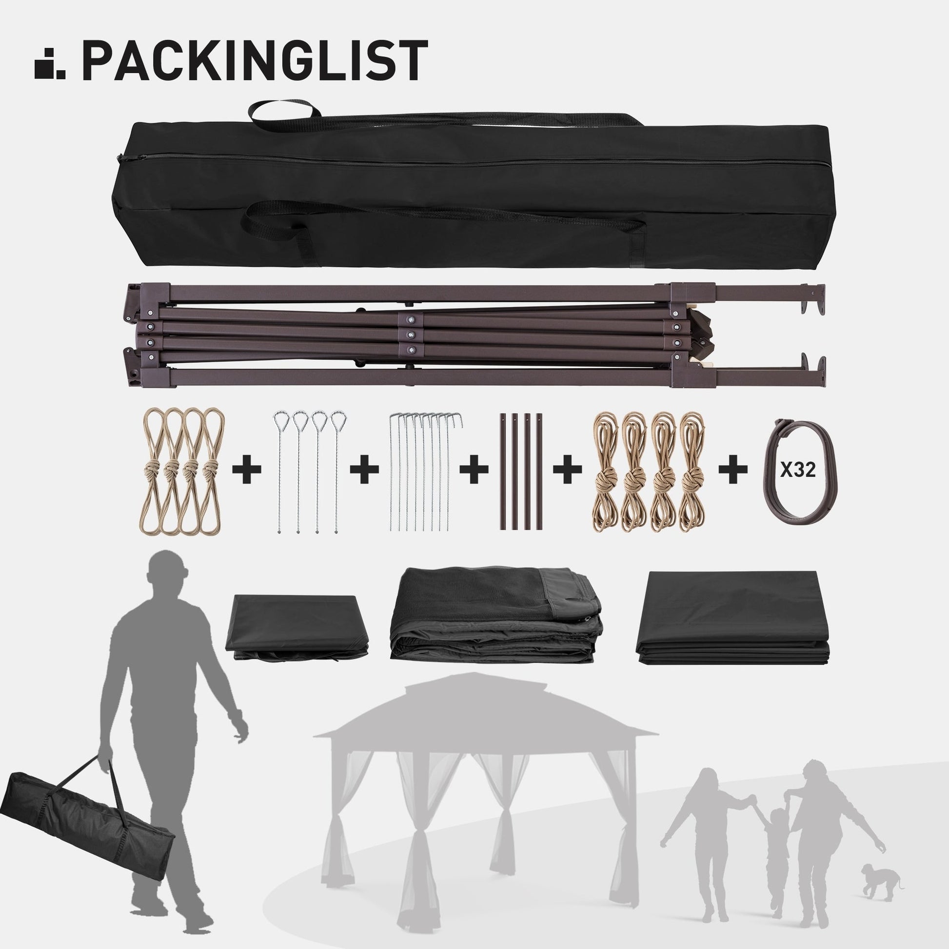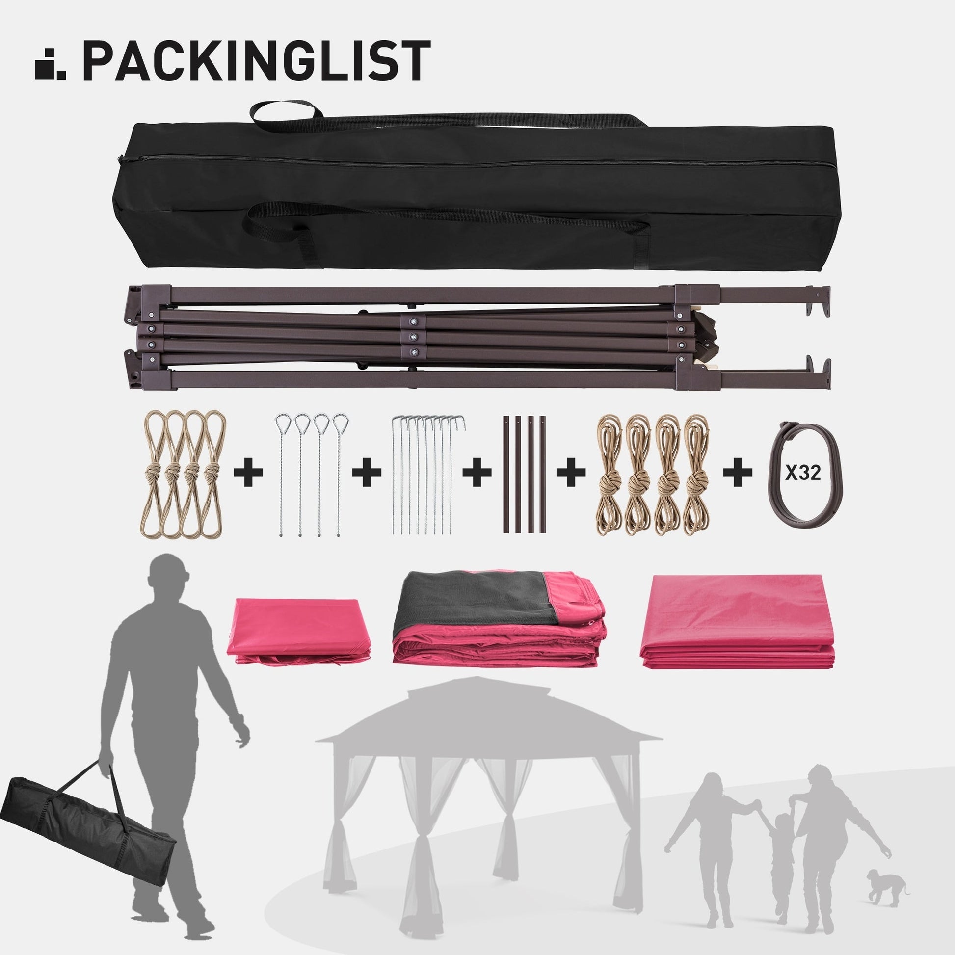 - STRUCTURE ROBUSTE - Ce gazebo pliable est étonnamment robuste malgré sa légèreté. Sa structure est fabriquée en acier de haute qualité et revêtue d'une peinture en poudre antirouille. Composée de plusieurs barres de renfort qui s'emboîtent solidement, elle est difficile à plier ou à déformer. (Piquets et cordes d'ancrage inclus)