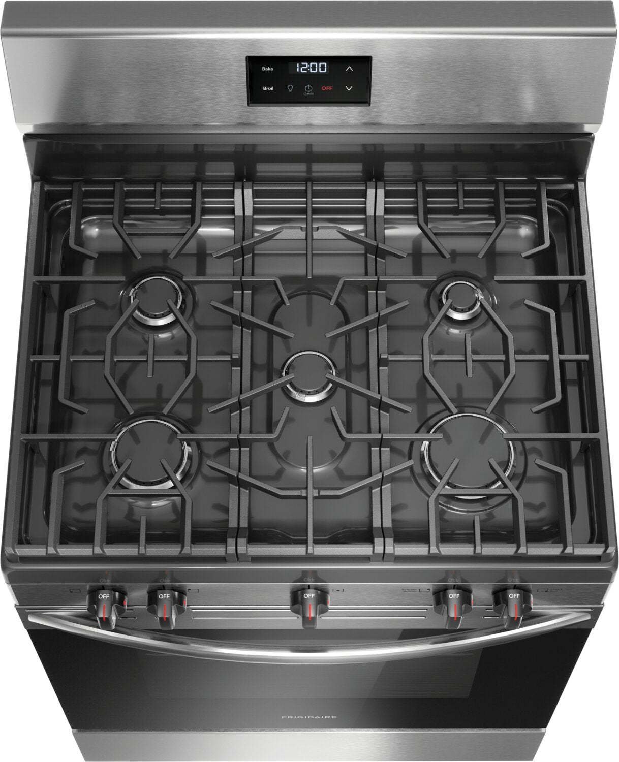 Cuisinière à gaz Frigidaire de 5,1 pi³ avec ébullition rapide et surface de cuisson à 5 brûleurs - Acier inoxydable - FCRG305… | Frigidaire 5,1 Cu. Fort. Cuisinière à gaz avec ébullition rapide et table de cuisson à cinq brûleurs - S…