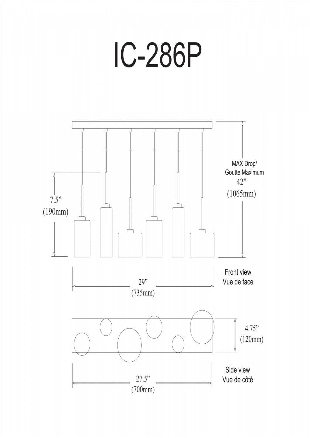 Dainolite Industrial Chic 6 Light Horizontal Pendant Polished Chrome Finish Clear Glass Lamp|Luminaire suspendu horizontal Industrial Chic de Dainolite en verre transparent, avec fini chromé poli et 6 ampoules