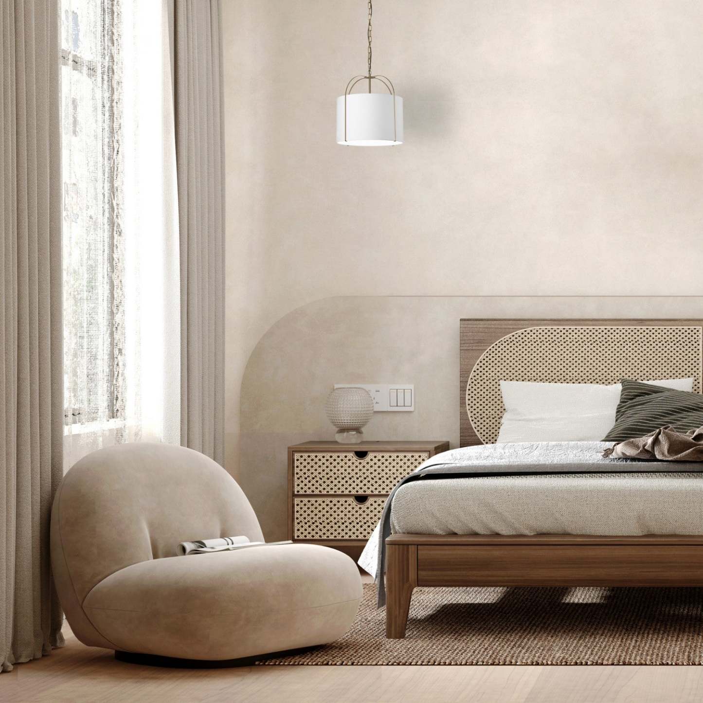 Luminaire suspendu contemporain Quincy de Dainolite en tissu blanc pour le plafond avec 1 ampoule et base de douille E26 à intensité variable d'un maximum de 60 W, approuvé UL pour les endroits secs avec une garantie limitée de 1 an. Parfait pour la cuisine, l'entrée, la salle de séjour et l'usage commercial. Les fonctionnalités incluent : assemblage et installation faciles, hauteur réglable, compatibilité DEL
