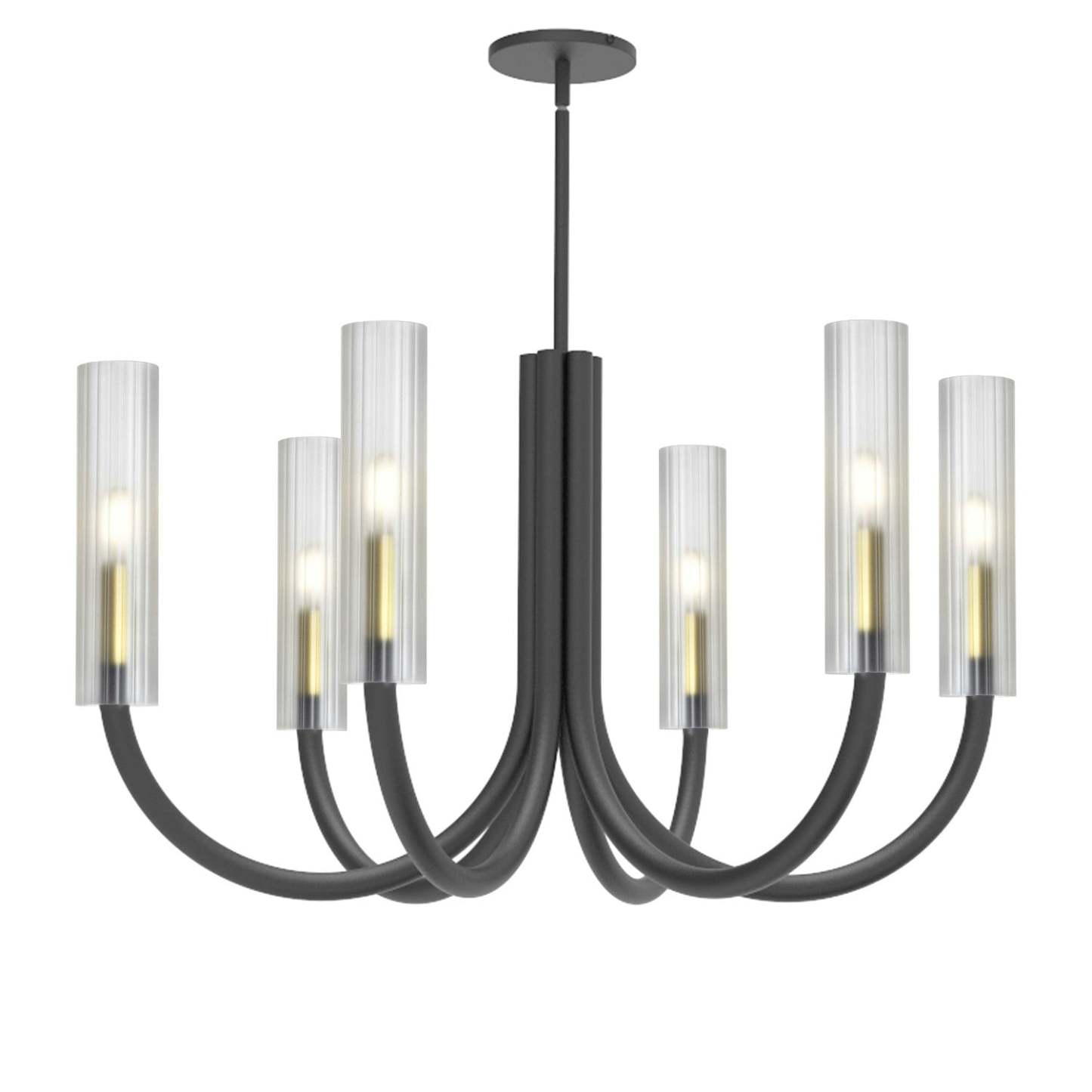 Dainolite Wand 6 Light Chandelier Matte Black/Aged Brass Frosted Glass Lamp|Lustre Wand de Dainolite en verre givré, avec fini noir mat et laiton vieilli et 6 ampoules