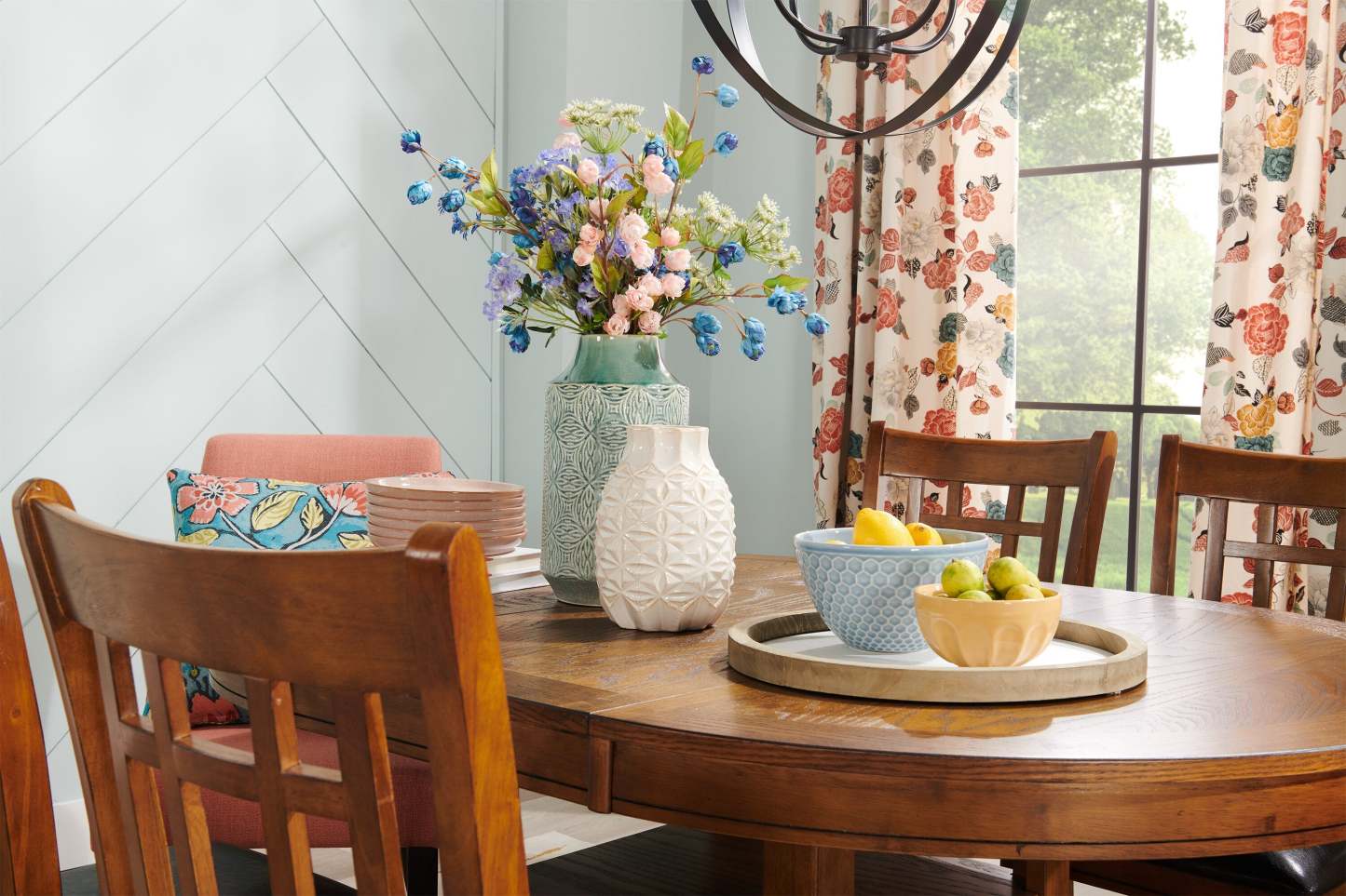 Rassemblez votre famille, grande ou petite, autour de cet ensemble de salle à manger Dena en cinq pièces avec finition chêne pour partager un repas et créer des souvenirs. Des placages en chêne sont appliqués sur une base en bois de caoutchouc pour créer un aspect attrayant. Pendant ce temps, la mousse haute densité rend le fait de rester assis pendant plusieurs plats ou des heures de devoirs confortables, tandis que la housse au look cuir offre respirabilité et style. Un design compact permet à cet ensemble de s'adapter à un espace limité – mais si tout le monde vient, utilisez la rallonge de table amovible pour un espace supplémentaire de 18 pouces. Placez cet ensemble Dena en cinq pièces au cœur des moments magiques de votre famille.